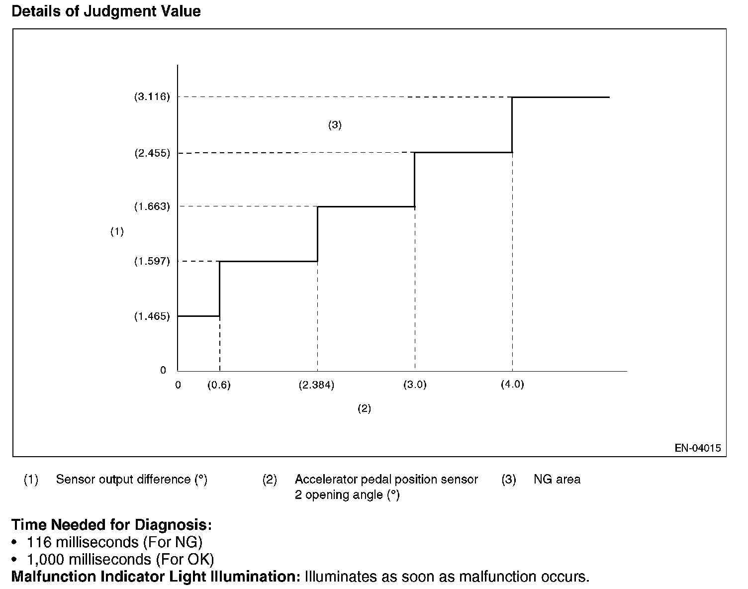 Judge OK and clear the NG when the malfunction criteria below are completed.