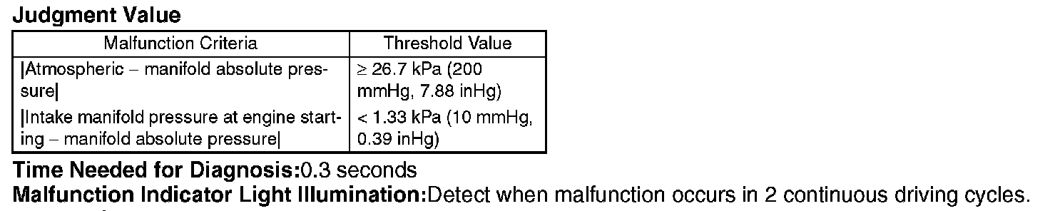 Judge NG when the continuous time of completing the malfunction criteria below becomes more than 0.3 seconds.