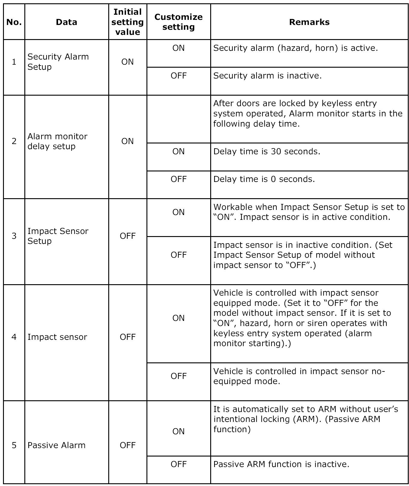 - In passive mode, the system will automatically activate the alarm but WILL NOT automatically lock the doors. Failure to lock the doors manually will result in a higher security risk.
