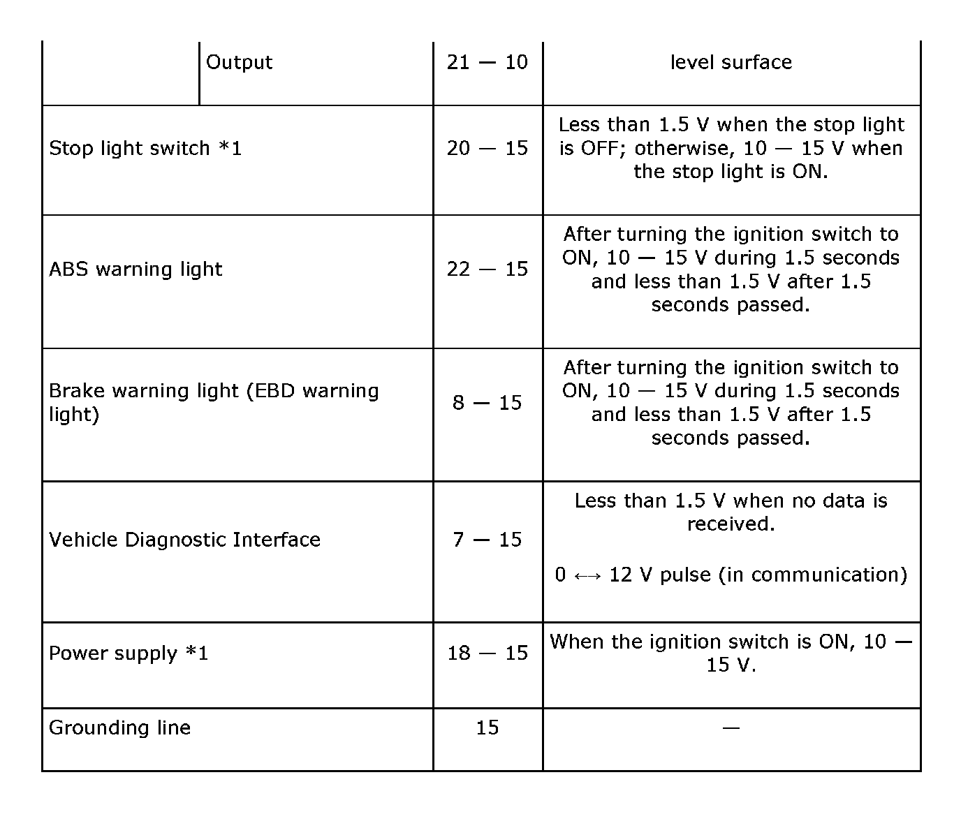 Control Module I/O SignalELECTRICAL SPECIFICATION