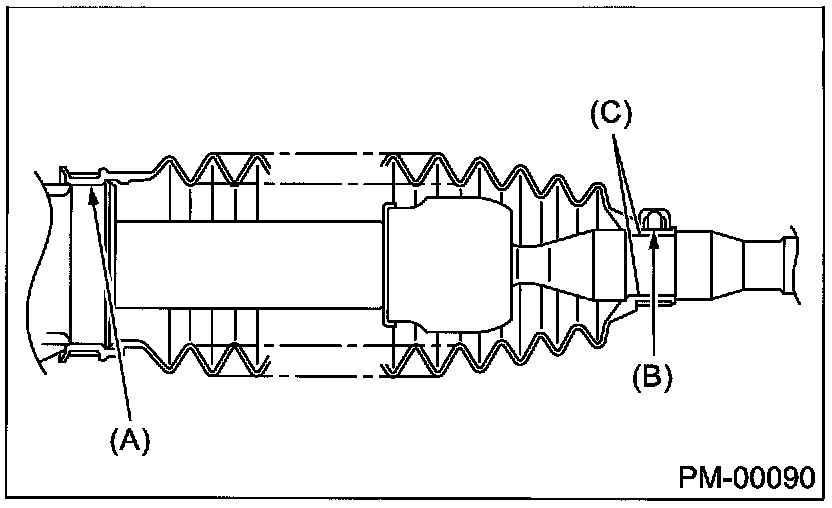 - Inspect both sides of gearbox boots as follows, and correct the defects if necessary.