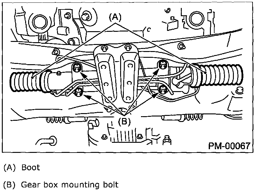 NOTE: Rotate (B) the position of gearbox boot against twist of it produced by adjustment of toe-in, etc.