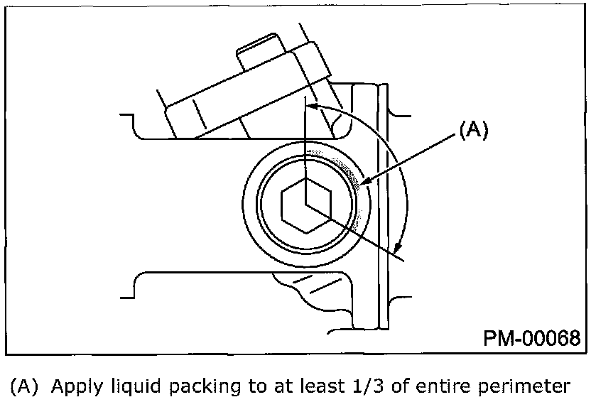 - Apply liquid packing to at least 1/3 of entire perimeter of adjusting screw thread.