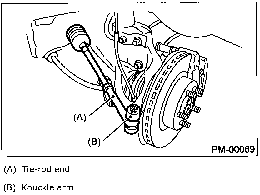 - Check the lock nut on tie-rod end for tightness. If it is loose, retighten it to the specified torque.
