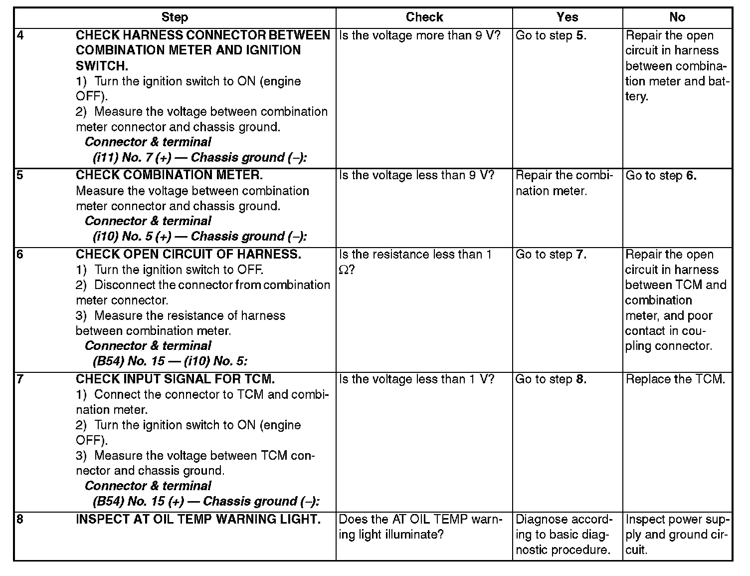 Oil Temp Warning Light Display Inspection