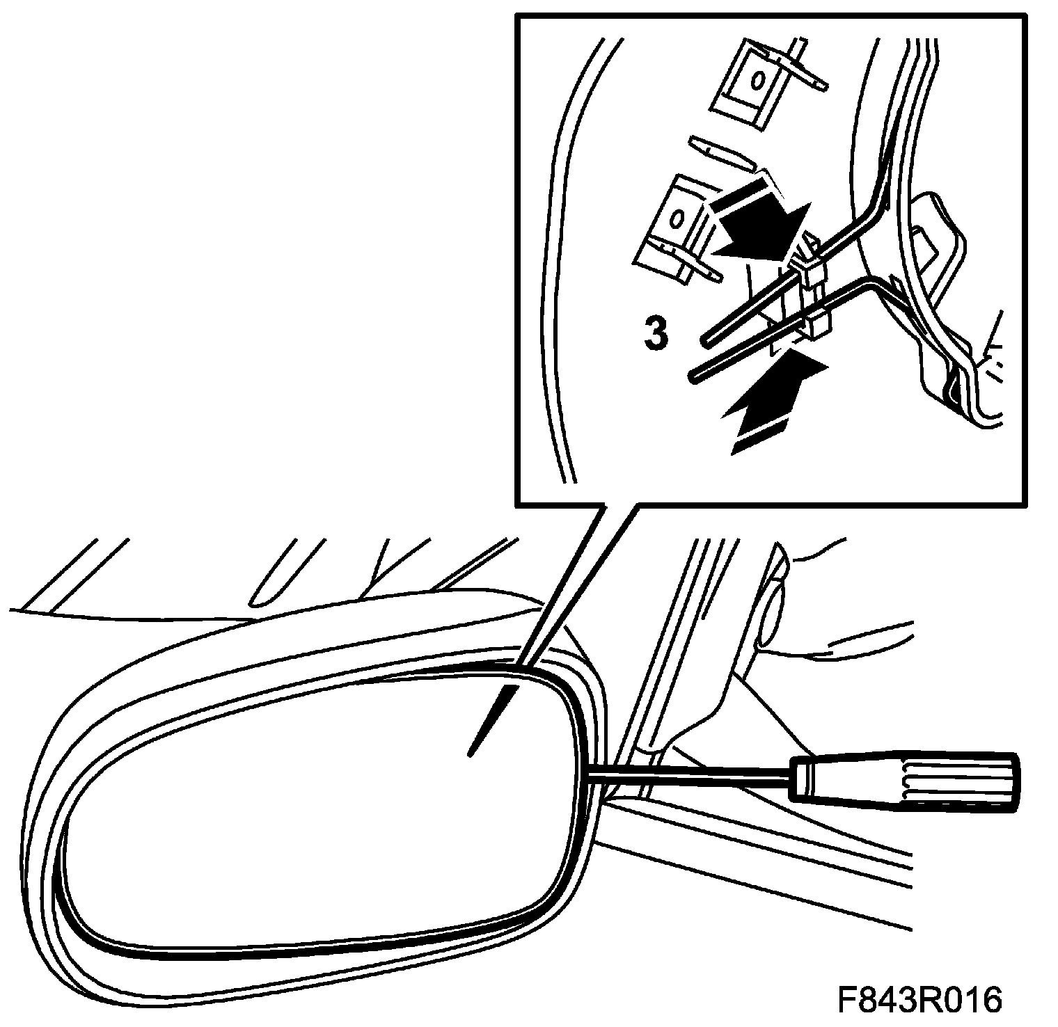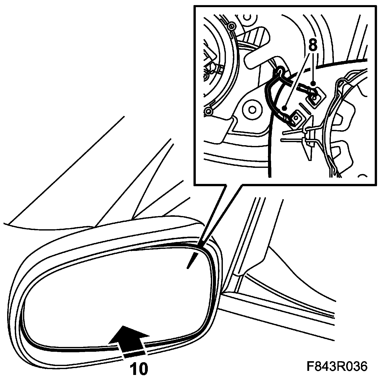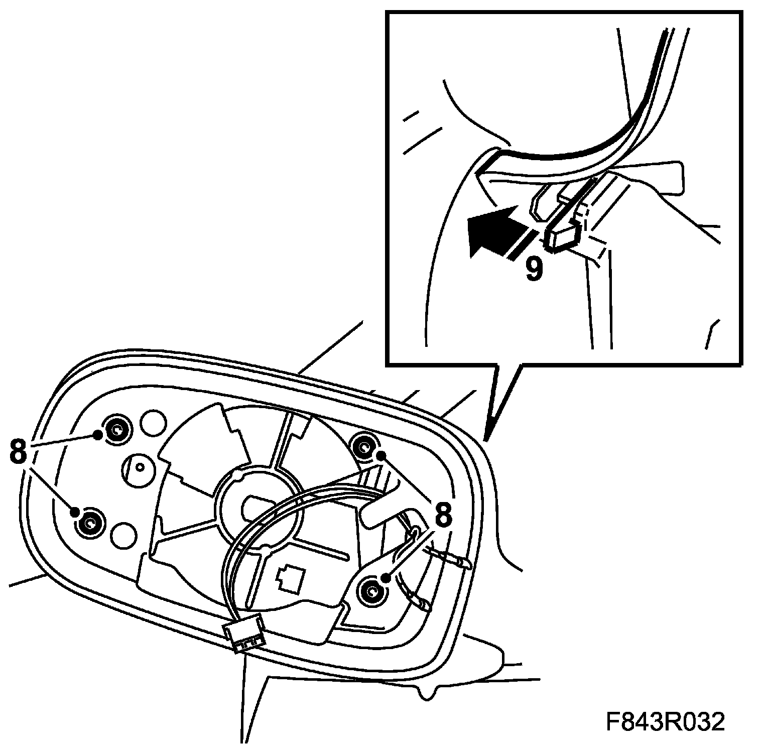 Fold the door mirror forward and check that the clips have engaged in their holes.