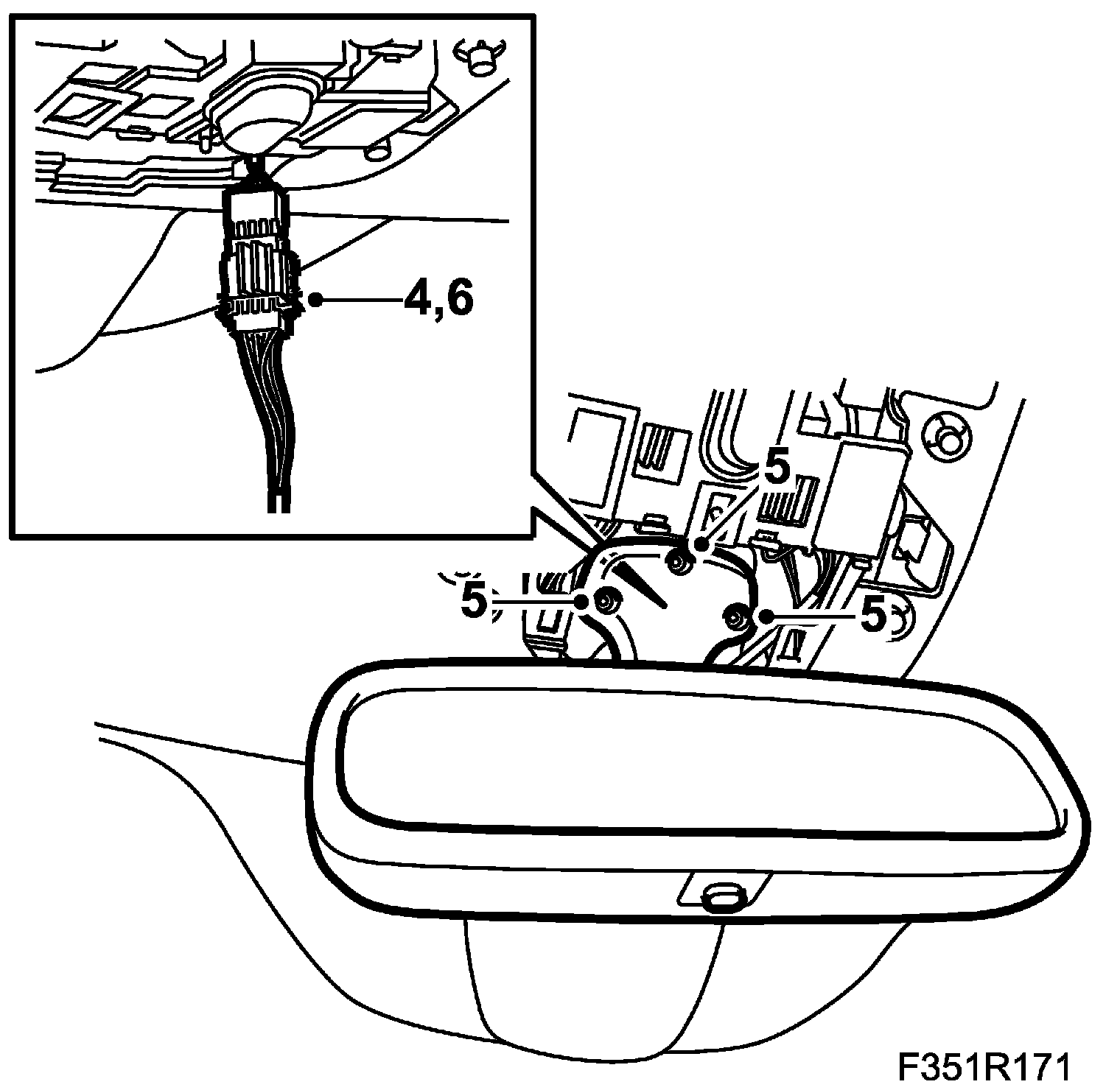 3. Put the rear-view mirror in place and fit the screws.