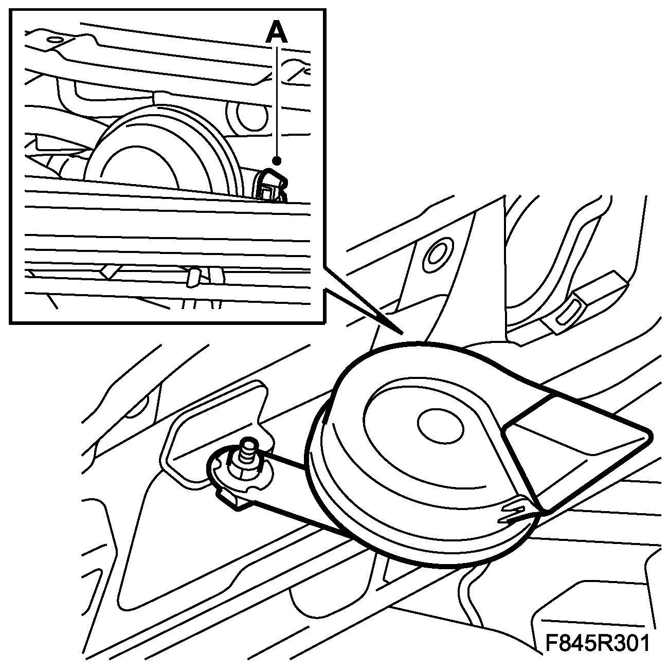 IMPORTANT: Take care so that the horn does not damage the condenser or AC pipe.