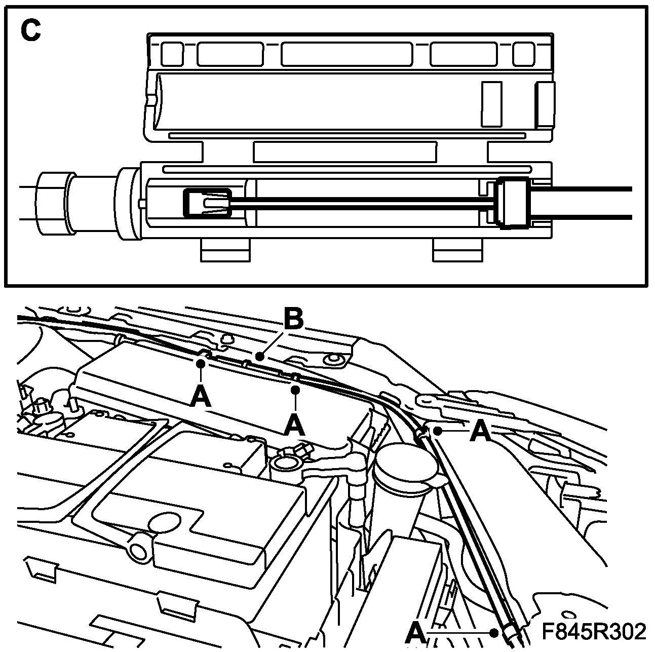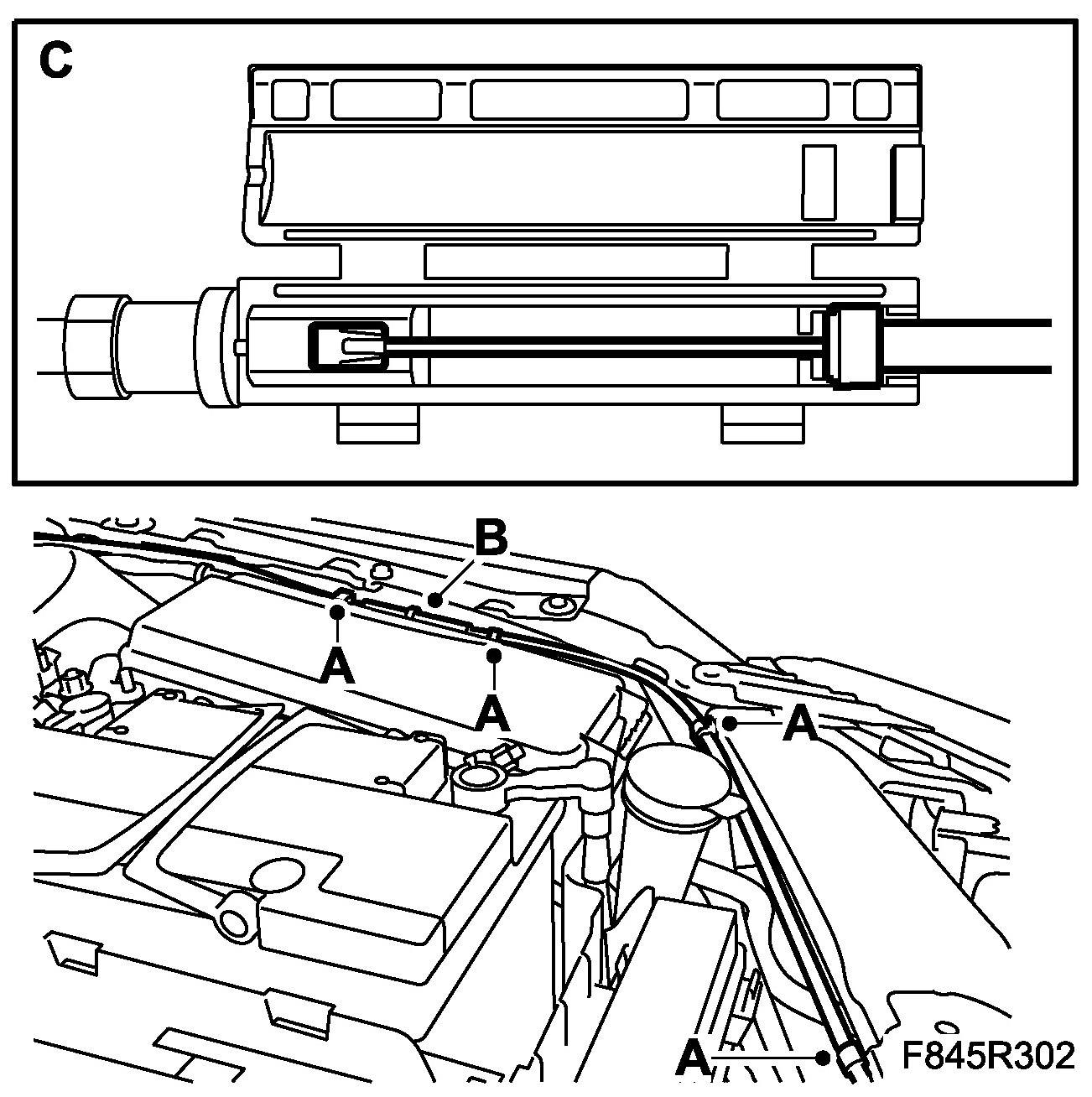 ^ Fit the cable to the clips (A)