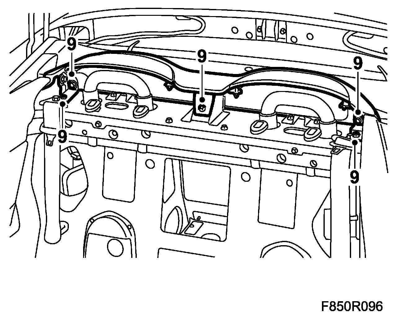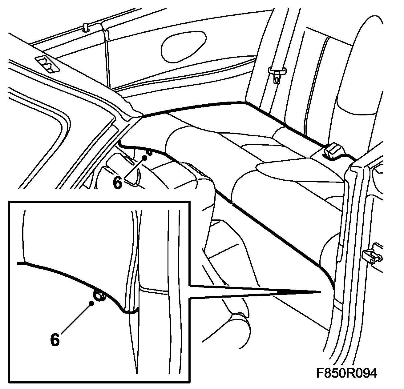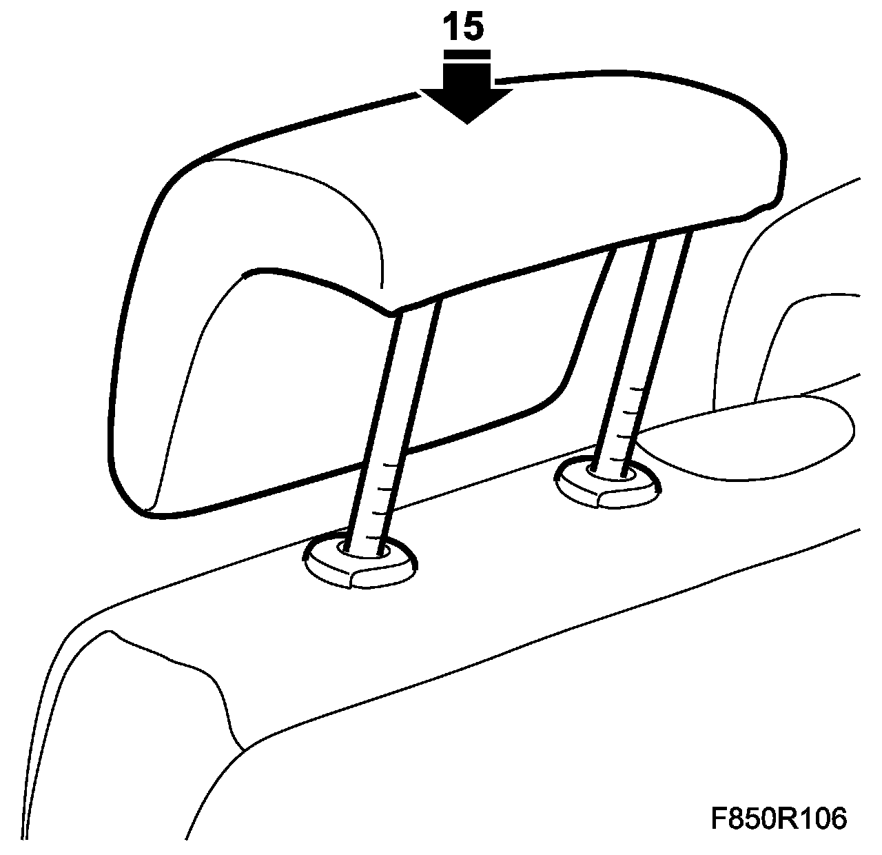 7. Remove the rear head restraint by lifting it straight up. Press the catches down and release the head restraint.