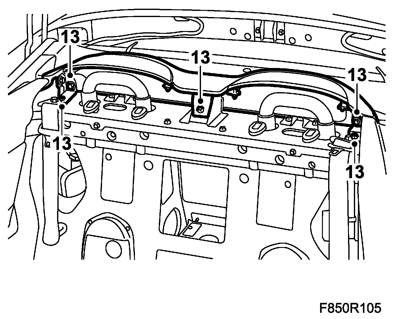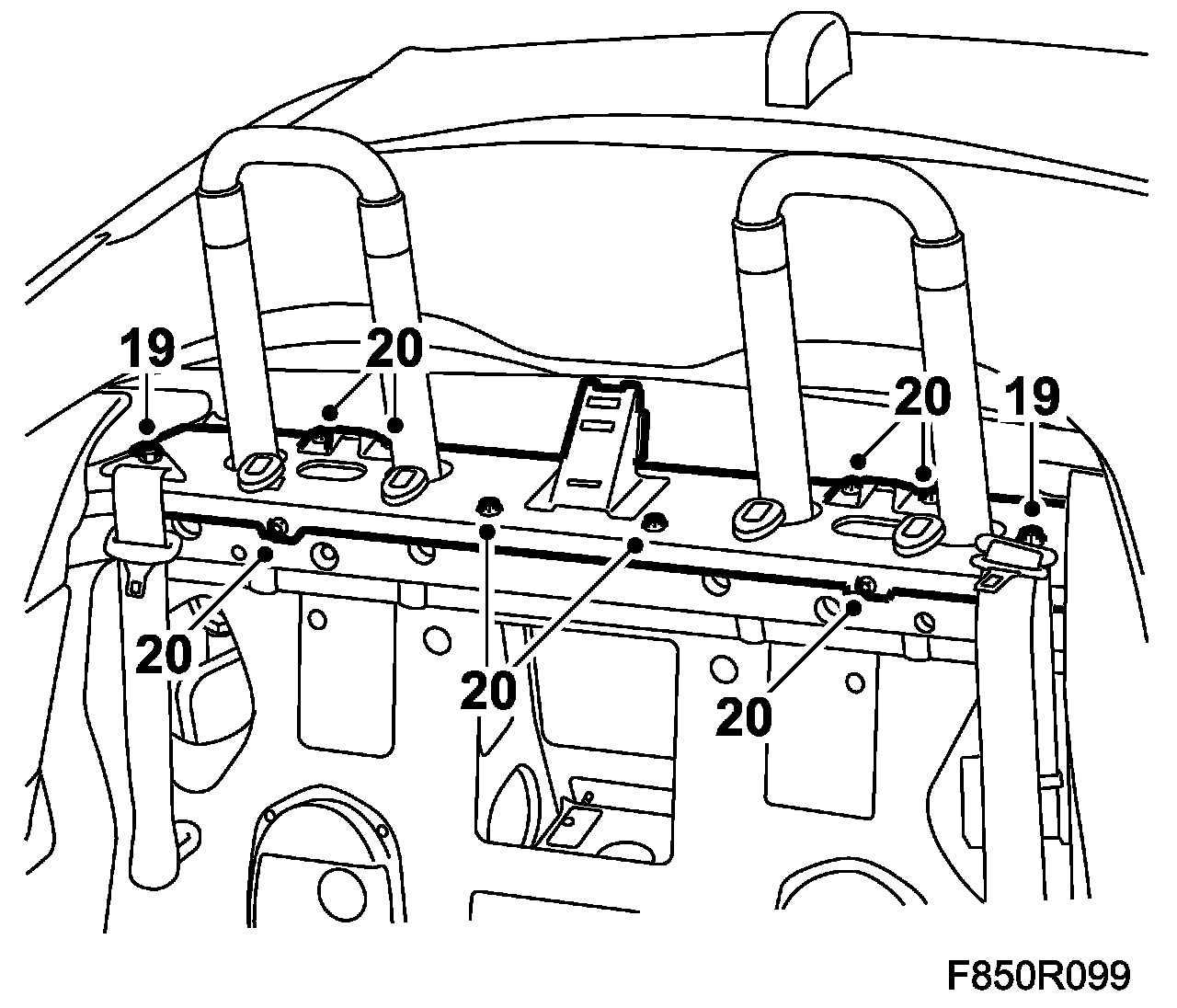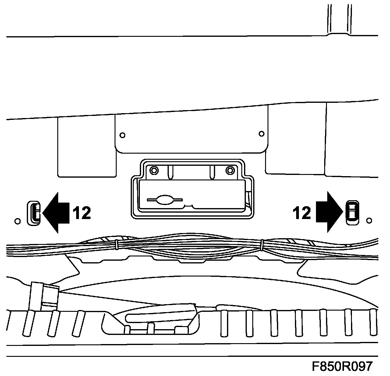 1. Carefully lower the roll bar unit and suspend it from the control tabs, and fit the roll bar unit. Ensure that no wires or connectors are caught.