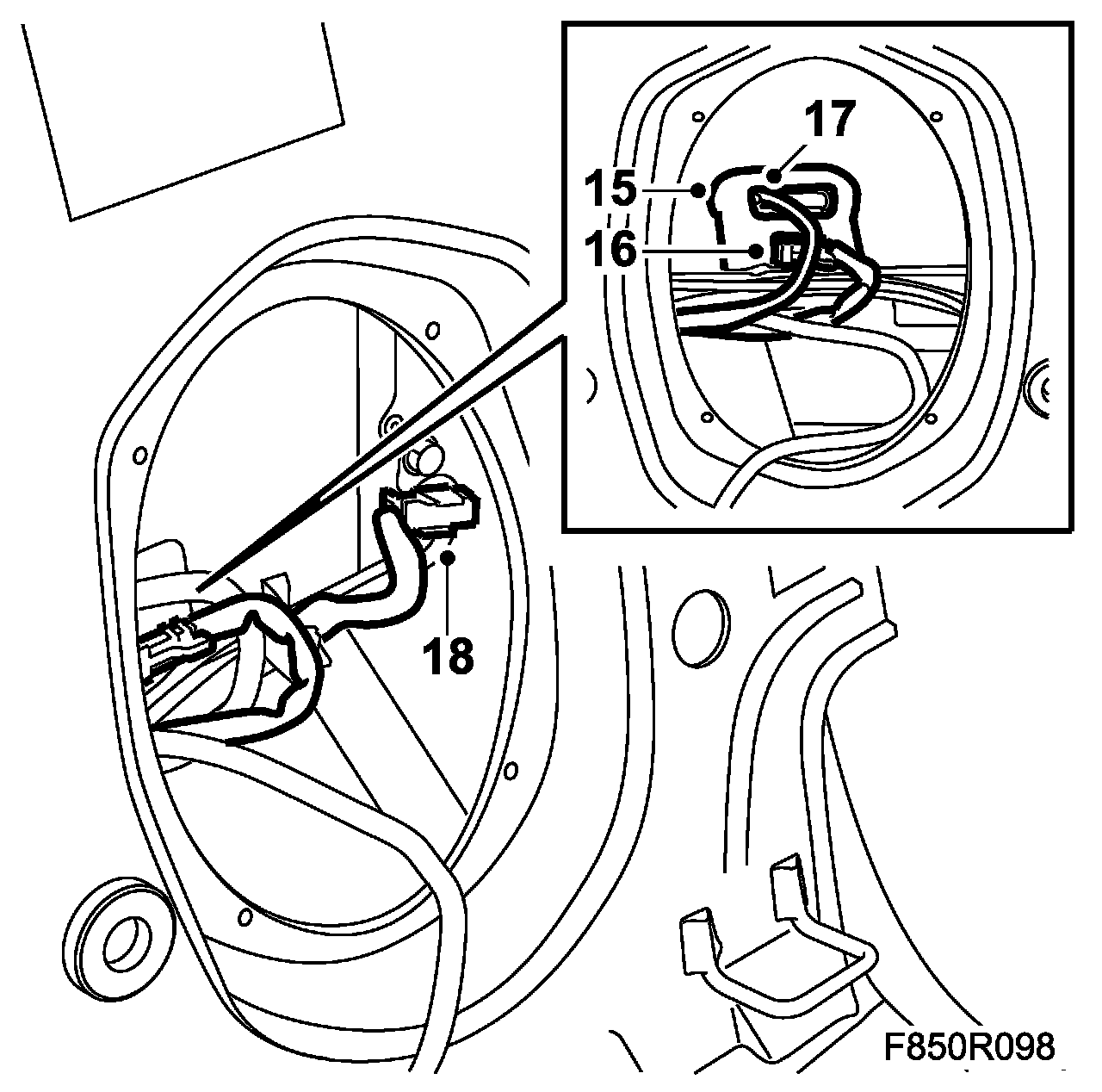 18. Left-hand roll bar unit on certain cars: Undo the clip holding the optical bus' connector. The connector is secured on the roll bar unit.