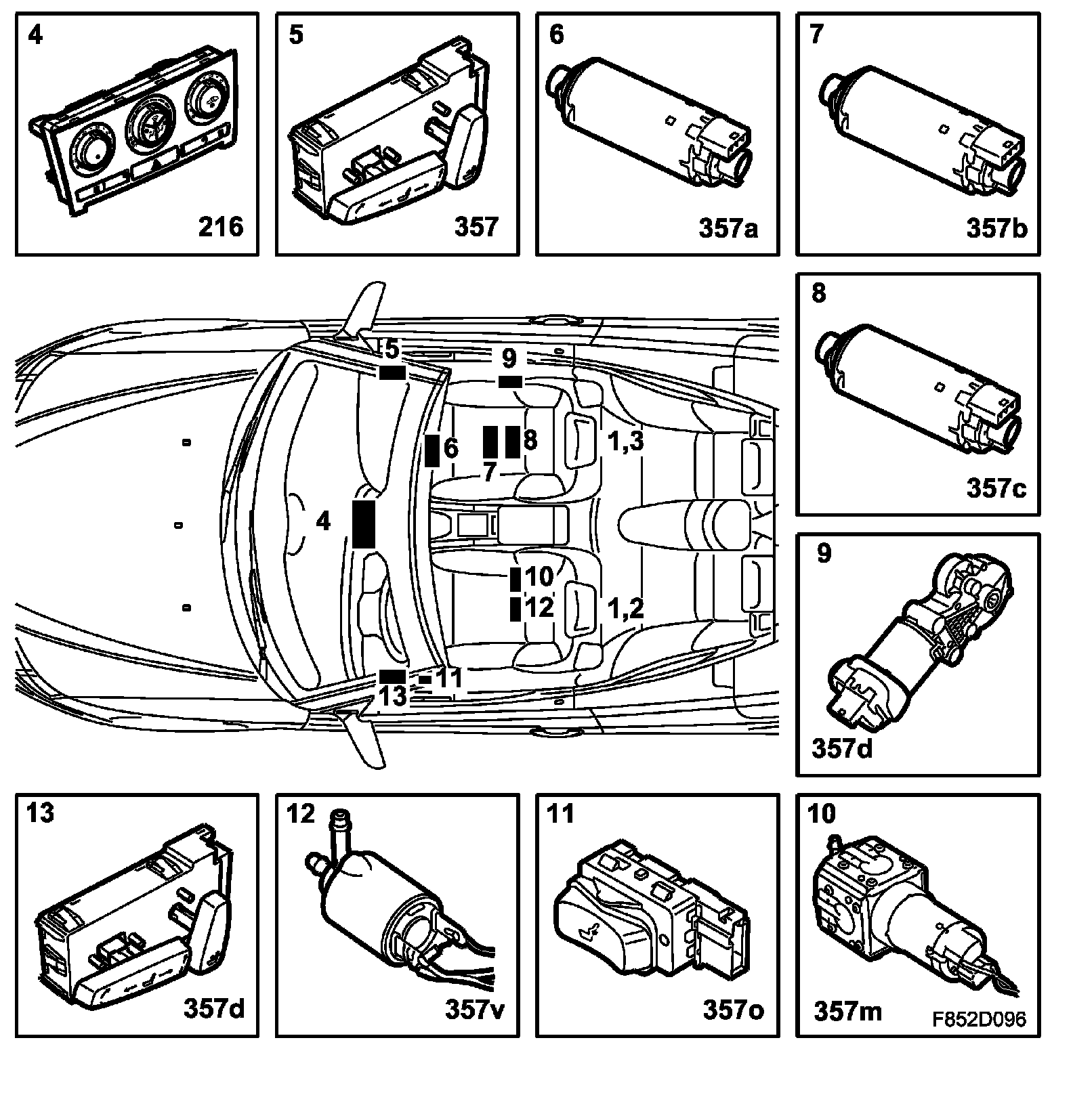 13. Switch, electrically adjustable driver's seat with memory (357D)