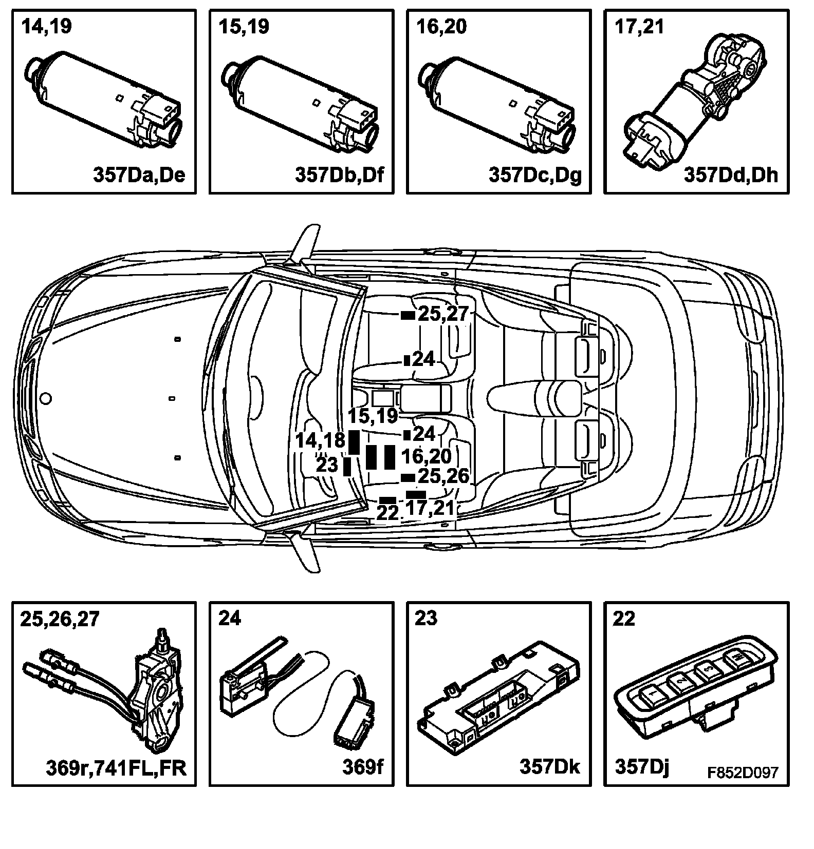 14. Legroom adjustment motor, electrically adjustable driver's seat (357Da)