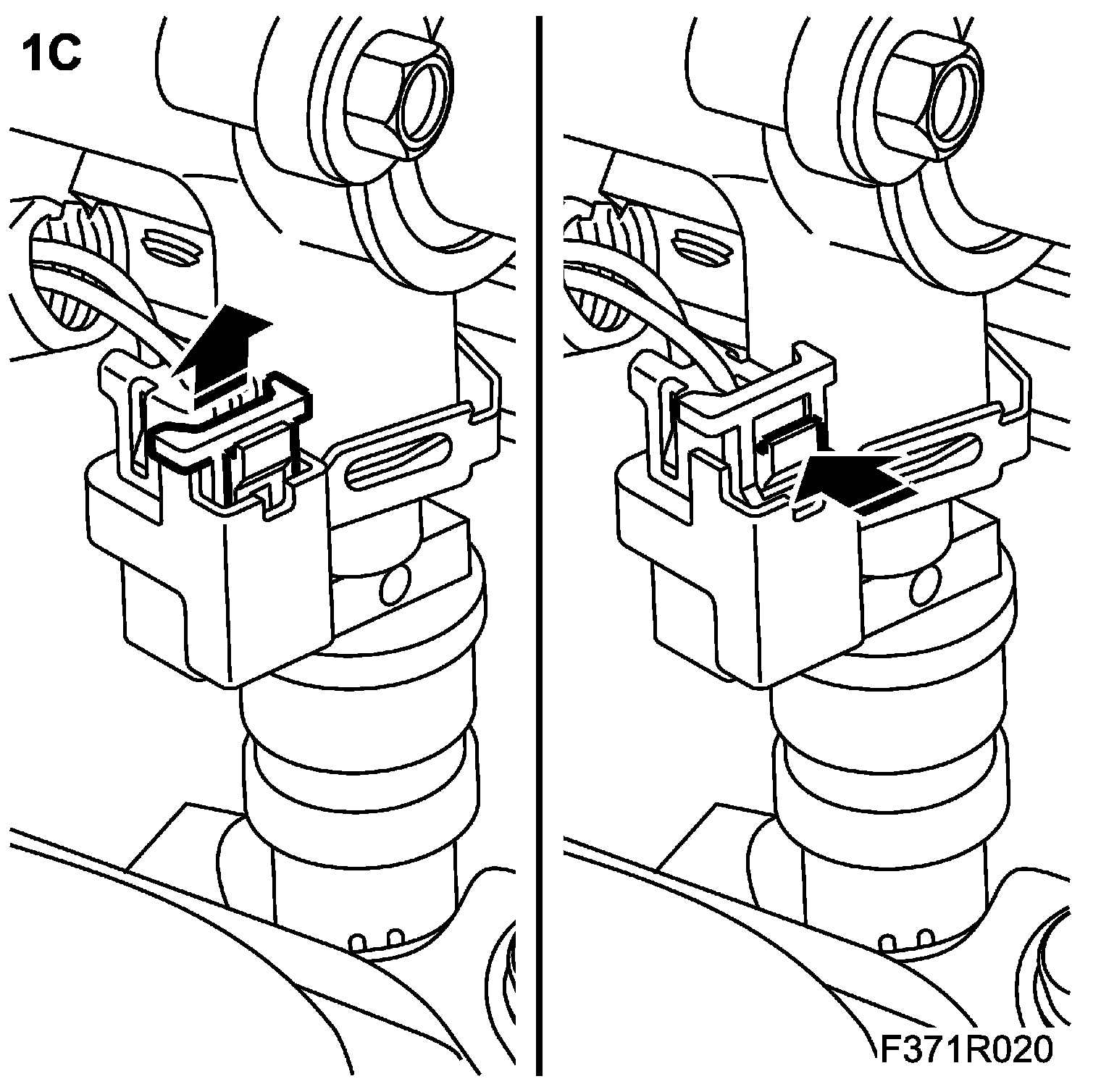 1.F. Press in the connector lock tab to release the brace. Release the connector slide while pushing the brace forward.