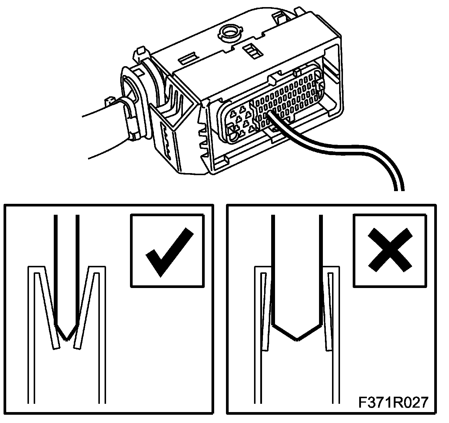 3. To check the connector clamping force, use a test cable with the right pin size (from kit 86 12 731).