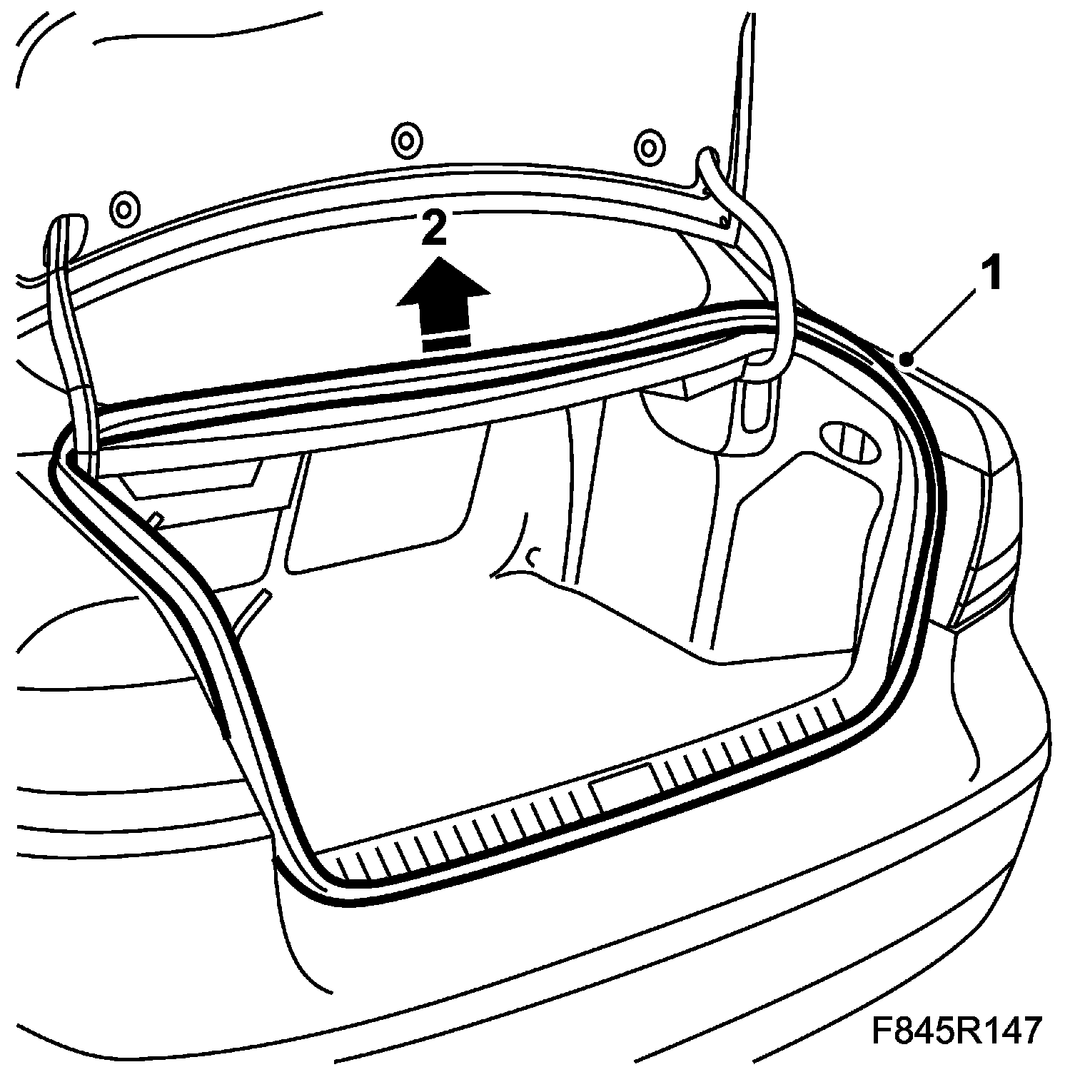 1. Open the boot lid and remove the weatherstrip by pulling it straight out.