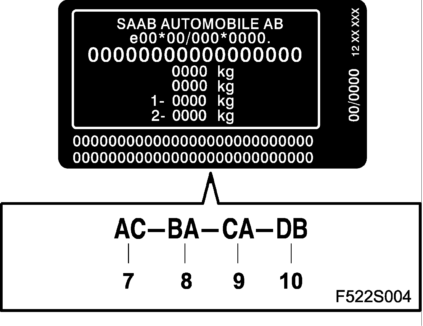 VIN plate, brake caliper and brake discsOn the bottom of the VIN plate there is a row of characters that describe which brake calipers and brake discs the car is equipped with.
