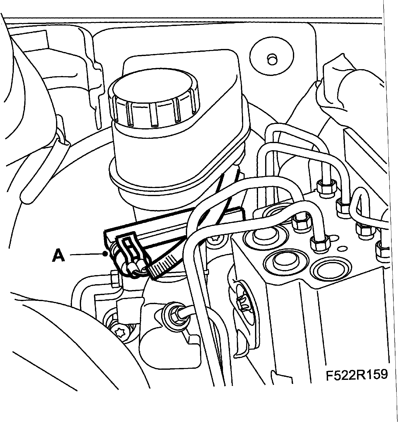 8. Unplug the connector (A) for the brake fluid reservoir's level sensor.