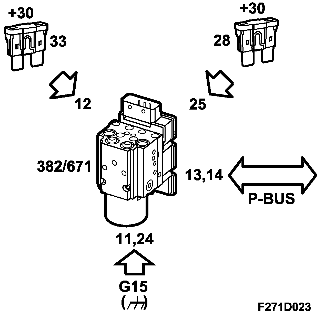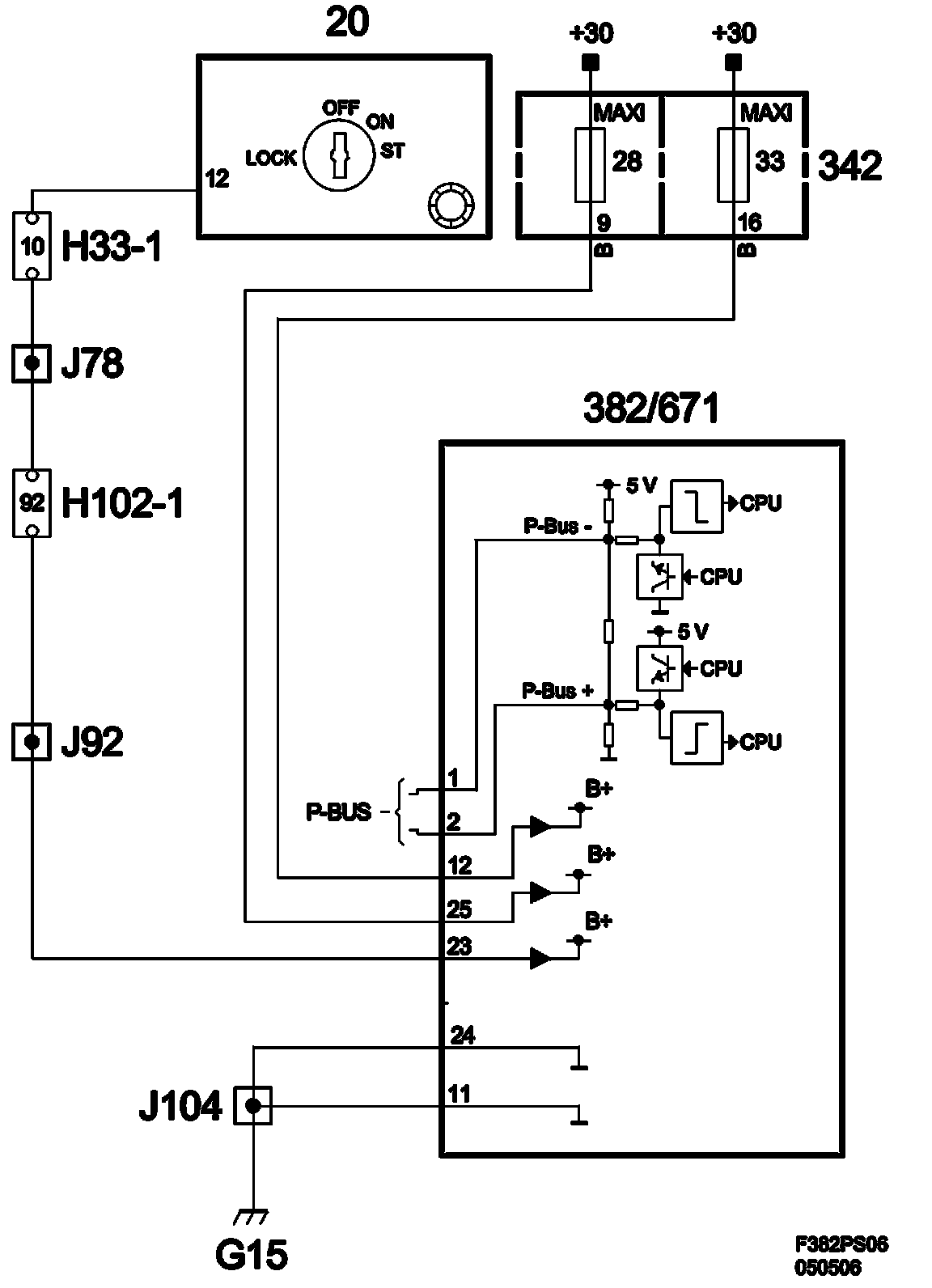 Power supply +30, +15 and ground: