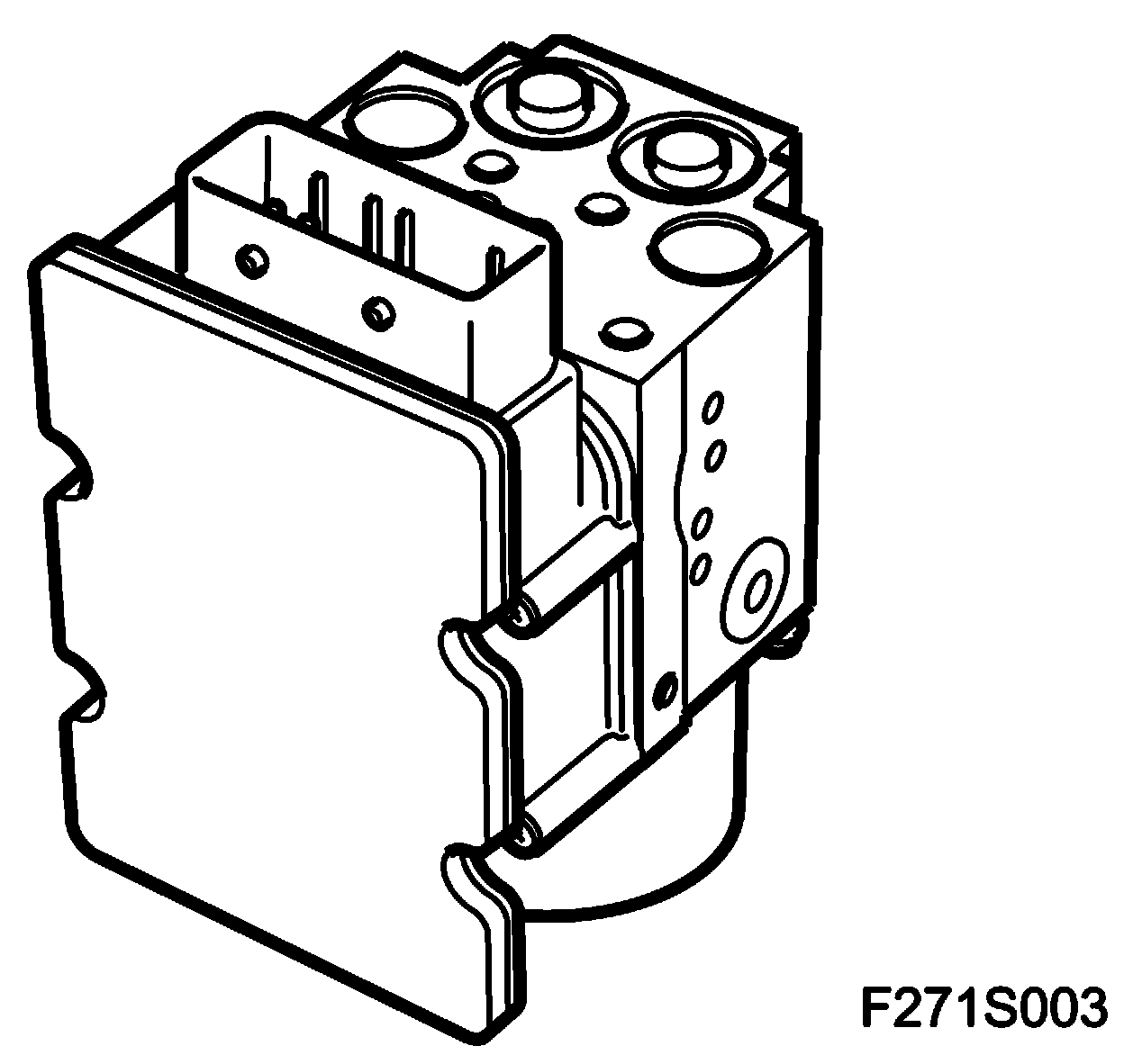 The valve block is part of the hydraulic unit. It regulates brake pressure to the wheels when braking with ABS control and during TCS control with braking. The valve block contains 8 electromagnetic valves: four inlet valves and four outlet valves, thus there is one inlet and one outlet valve per wheel.