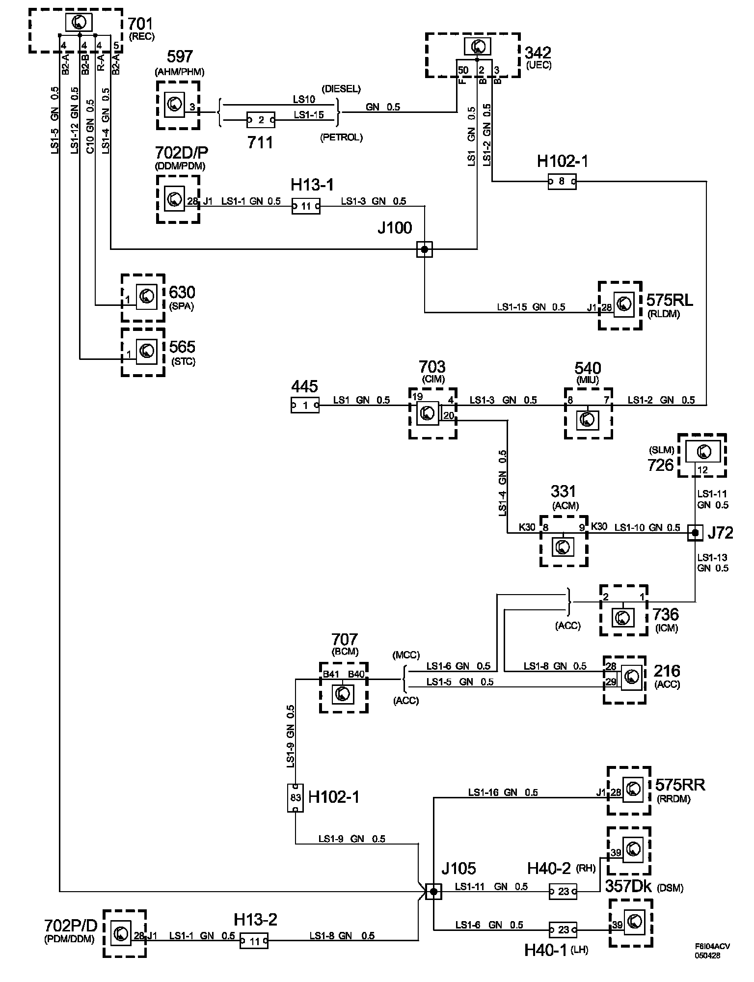 Power Supply Diagrams: The diagrams for the power supplies that may be feeding this system (+30, +15, +54, +X, and +B) can be found at Power and Ground Distribution diagrams. Electrical Diagrams