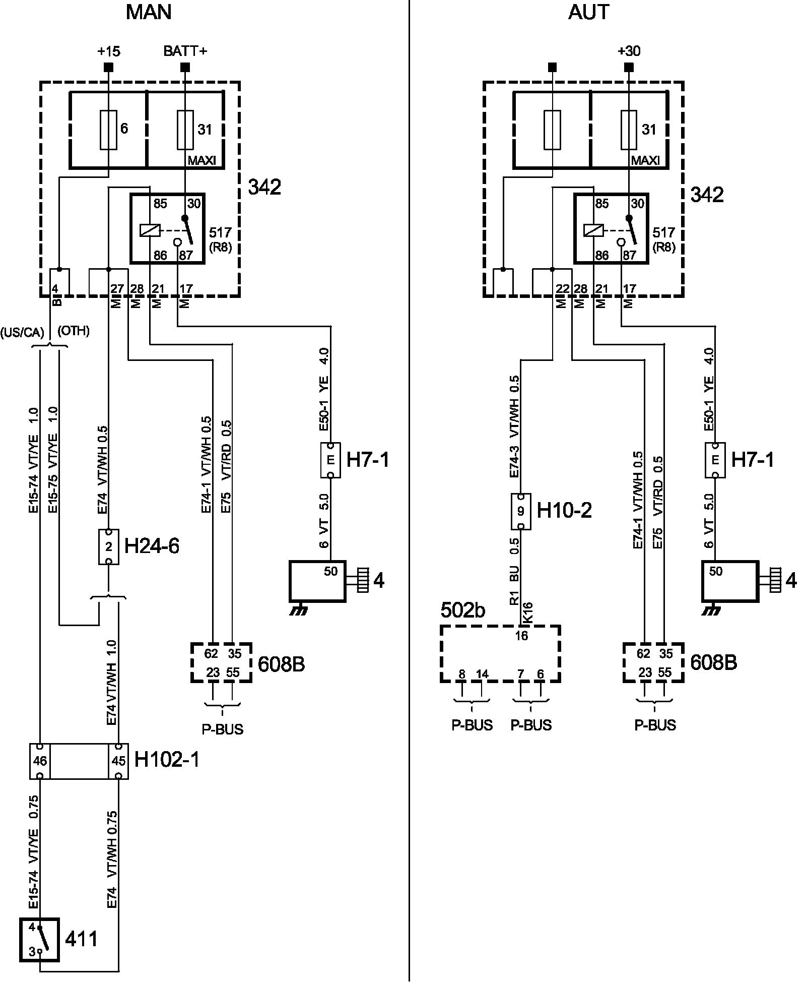 Power Supply Diagrams: The diagrams for the power supplies that may be feeding this system (+30, +15, +54, +X, and +B) can be found at Power and Ground Distribution diagrams. Electrical Diagrams