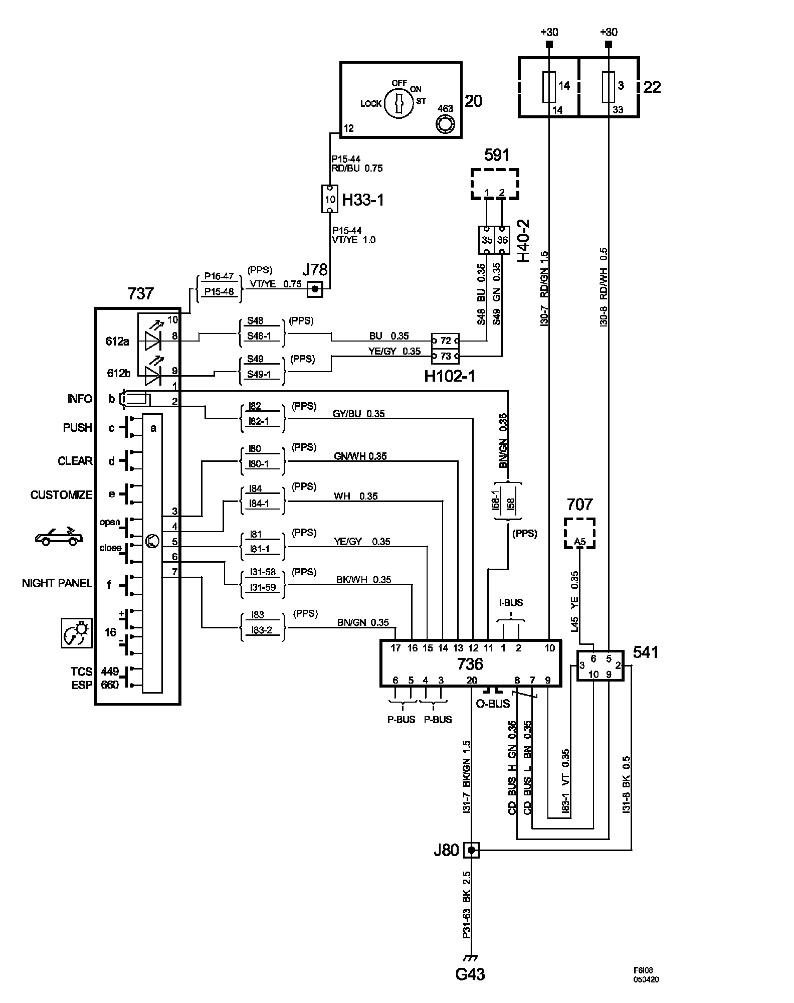 Power Supply Diagrams: The diagrams for the power supplies that may be feeding this system (+30, +15, +54, +X, and +B) can be found at Power and Ground Distribution diagrams. Electrical Diagrams