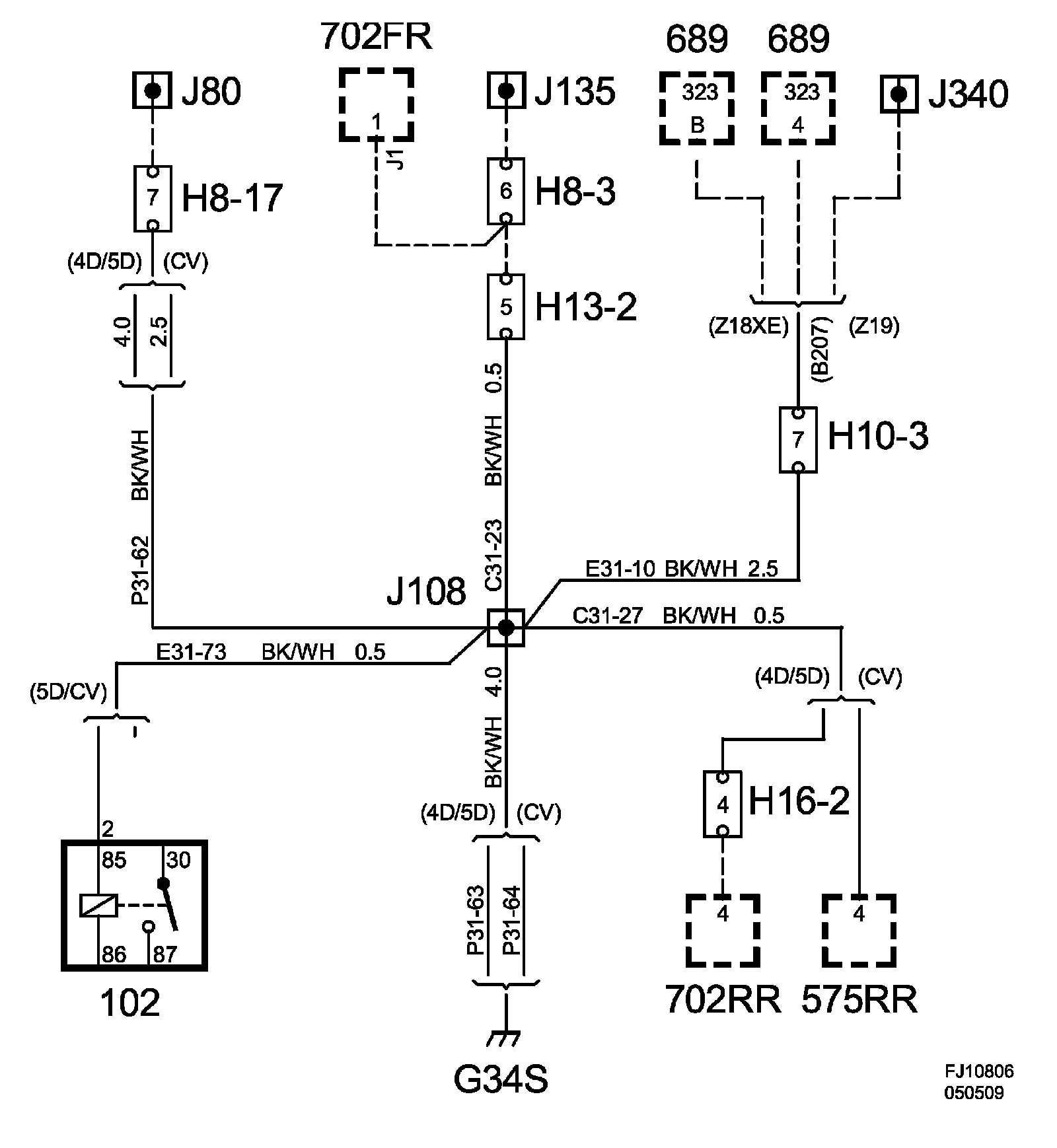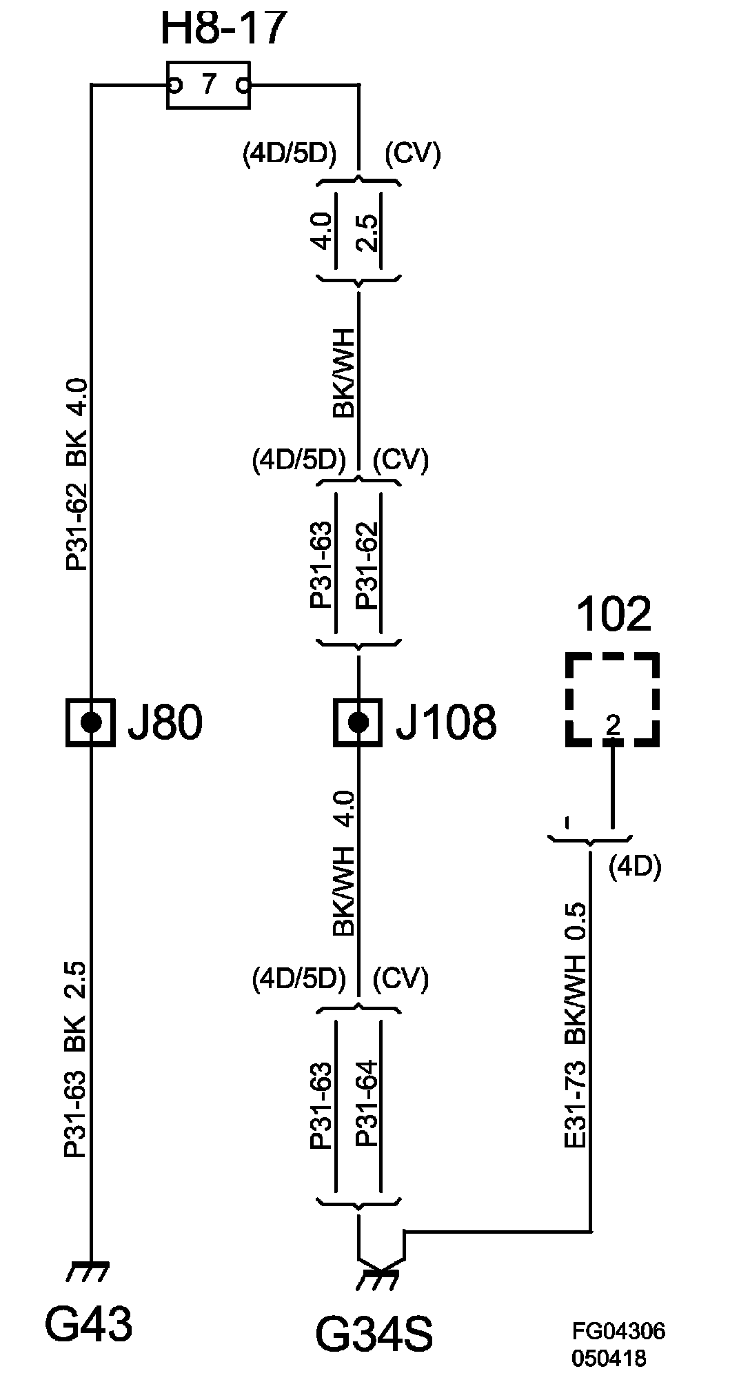 The grounding point is connected to grounding point G43 via the crimp connections J108 and J80.