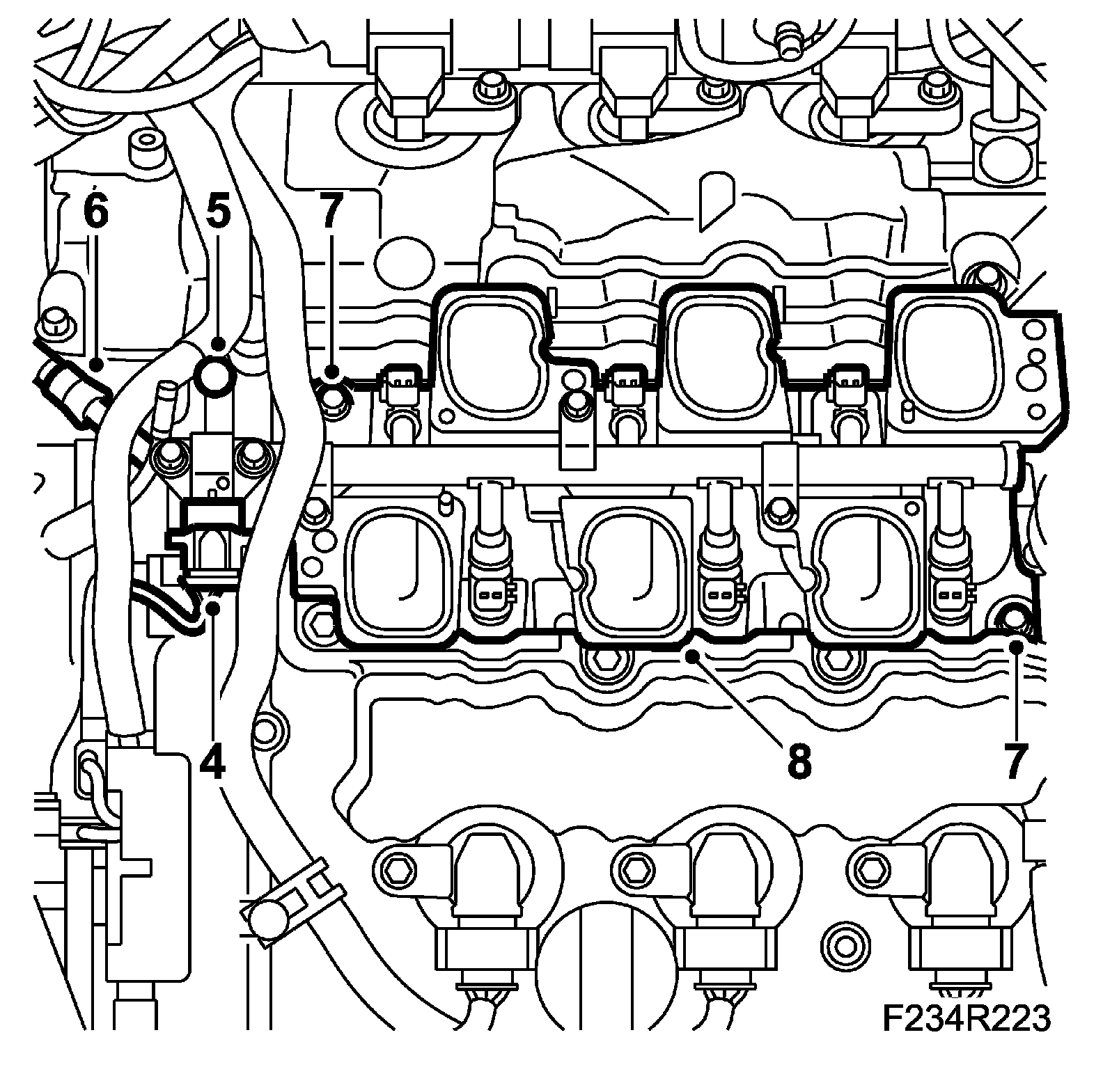 7. Fit Intake manifold, upper.