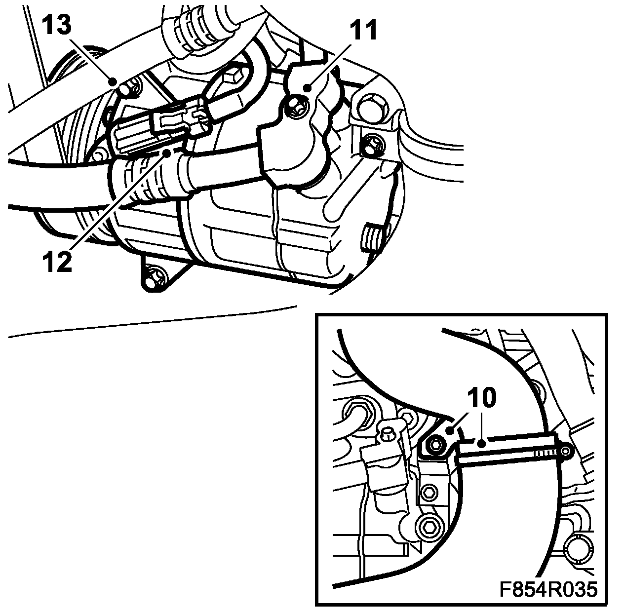2. Fit the A/C compressor. Insert the lower screws.
