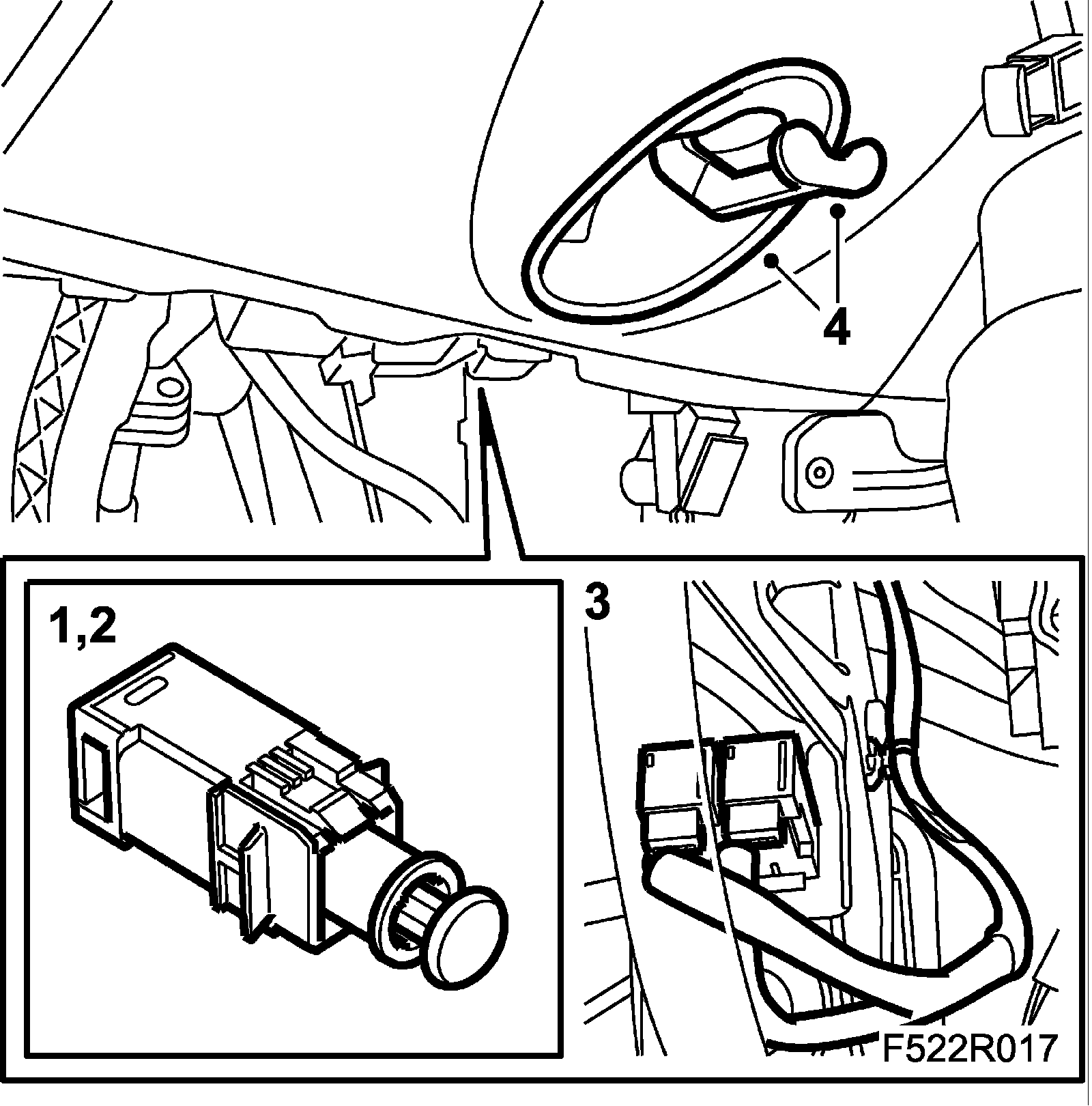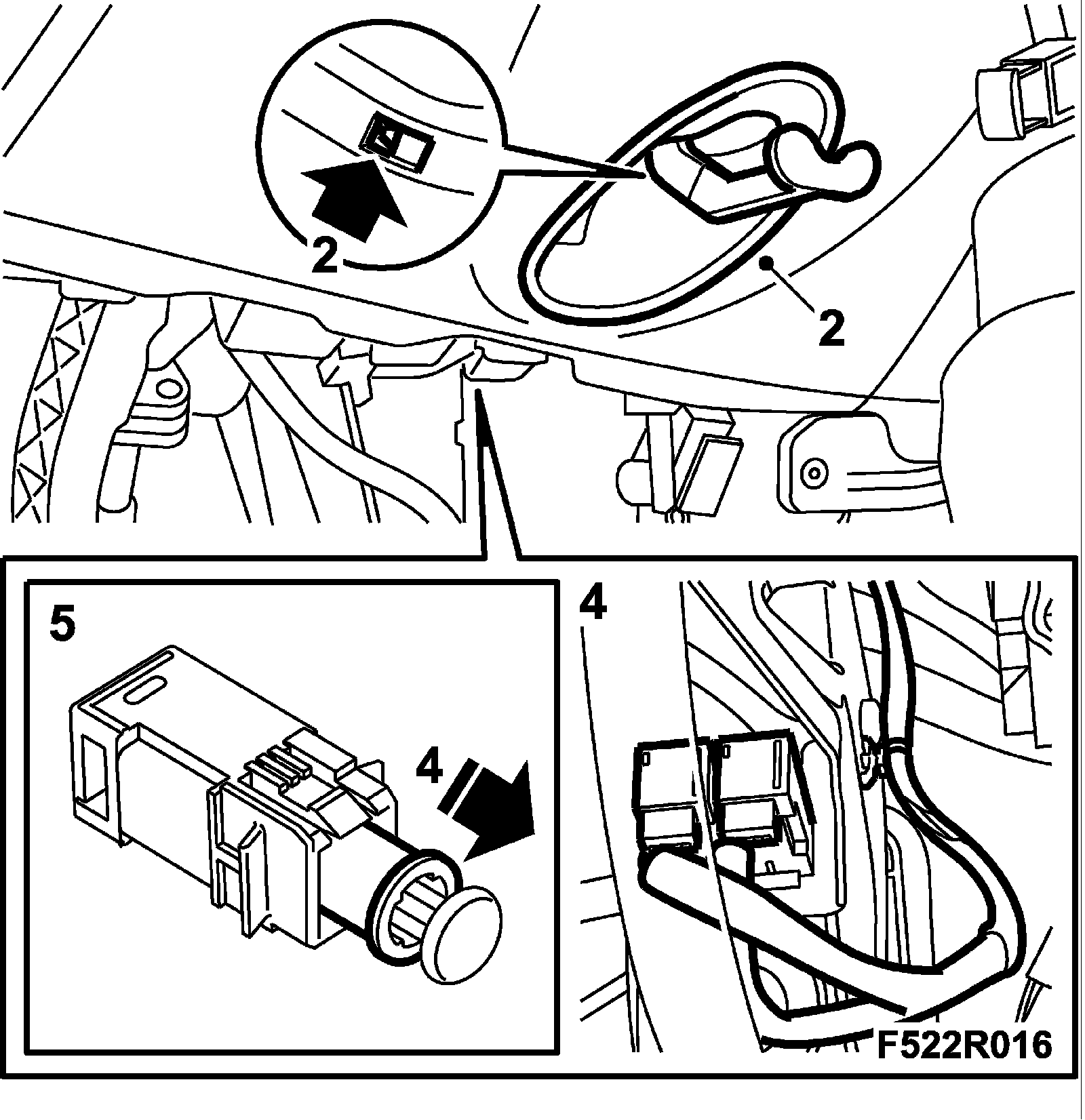 4. Remove the switch pushrod and locking sleeve. Push in the lock tongue and remove the switch.