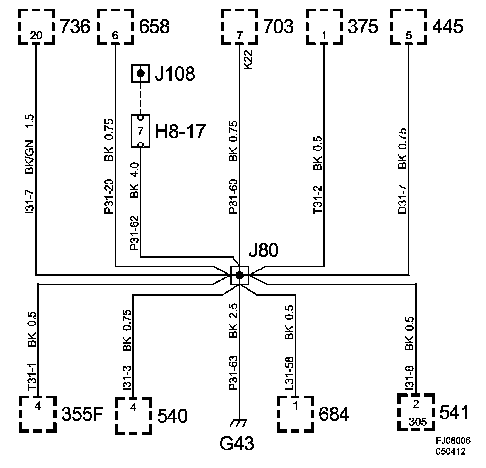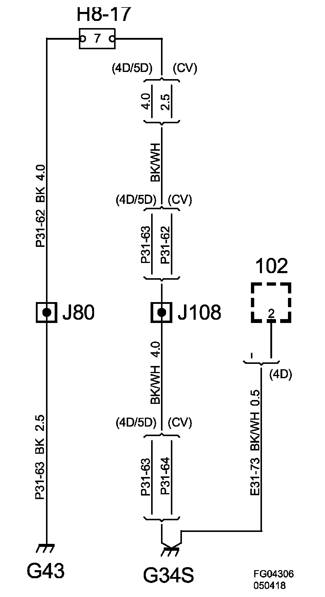 The grounding point is connected with grounding point G34S via crimps J80 and J108.