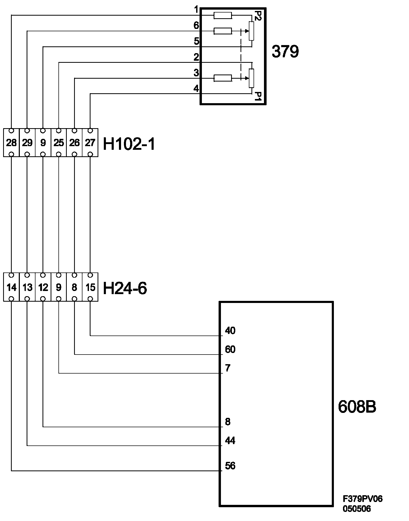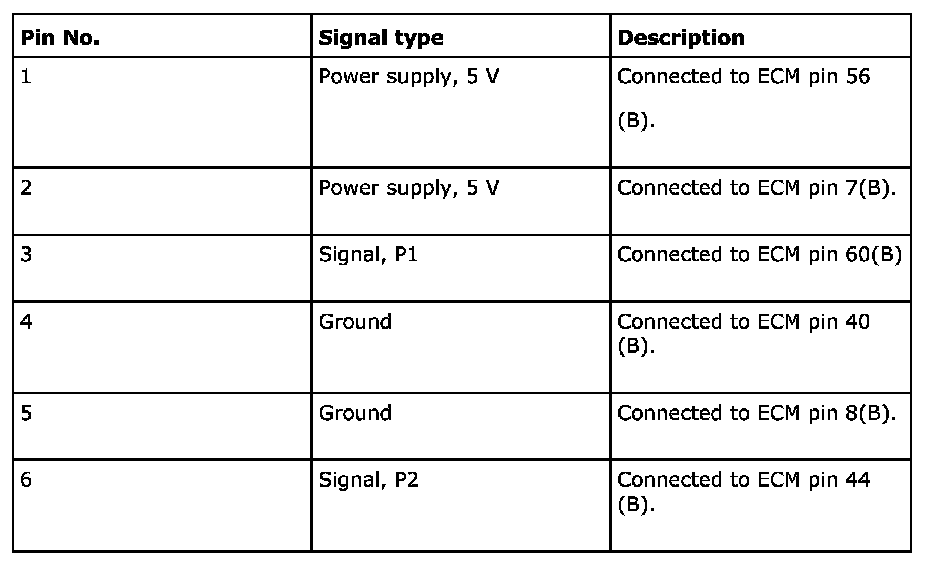 To ensure that information from the position sensor is accurate, there are two different potentiometers. Both are supplied 5 V, but the signal to the control module is always twice as much on PI as on P2, 0-5 V on the one and 0-2.5 V on the other. This ensures both the function and diagnosis of the position sensor. See the illustration of the inner connections of the sensor.