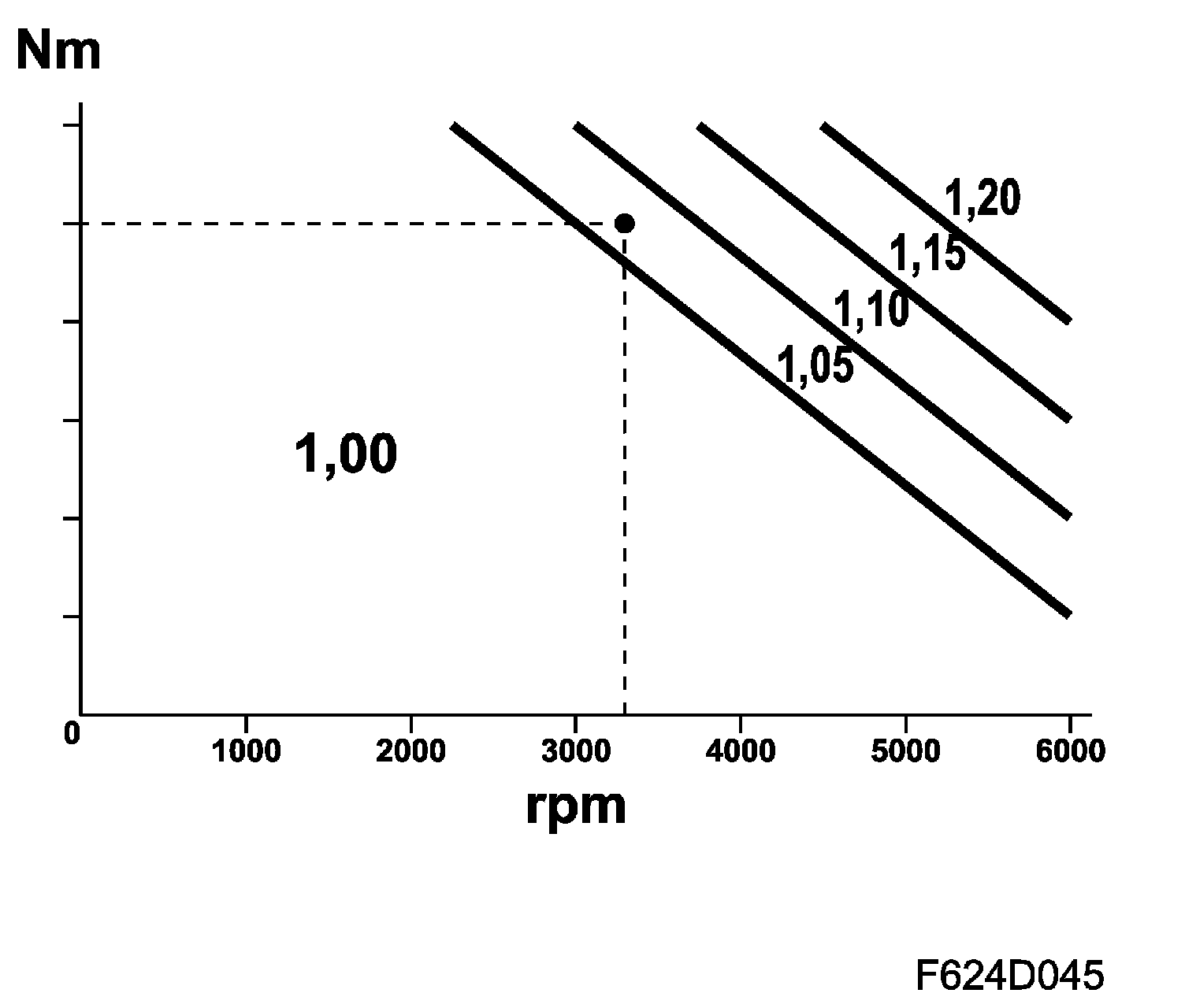 At high engine torque, the lambda value drops due to the extra fuel supplied via full load enrichment.