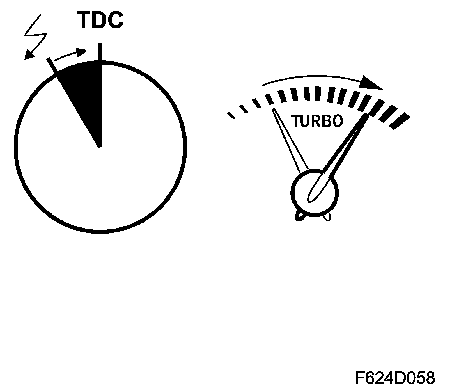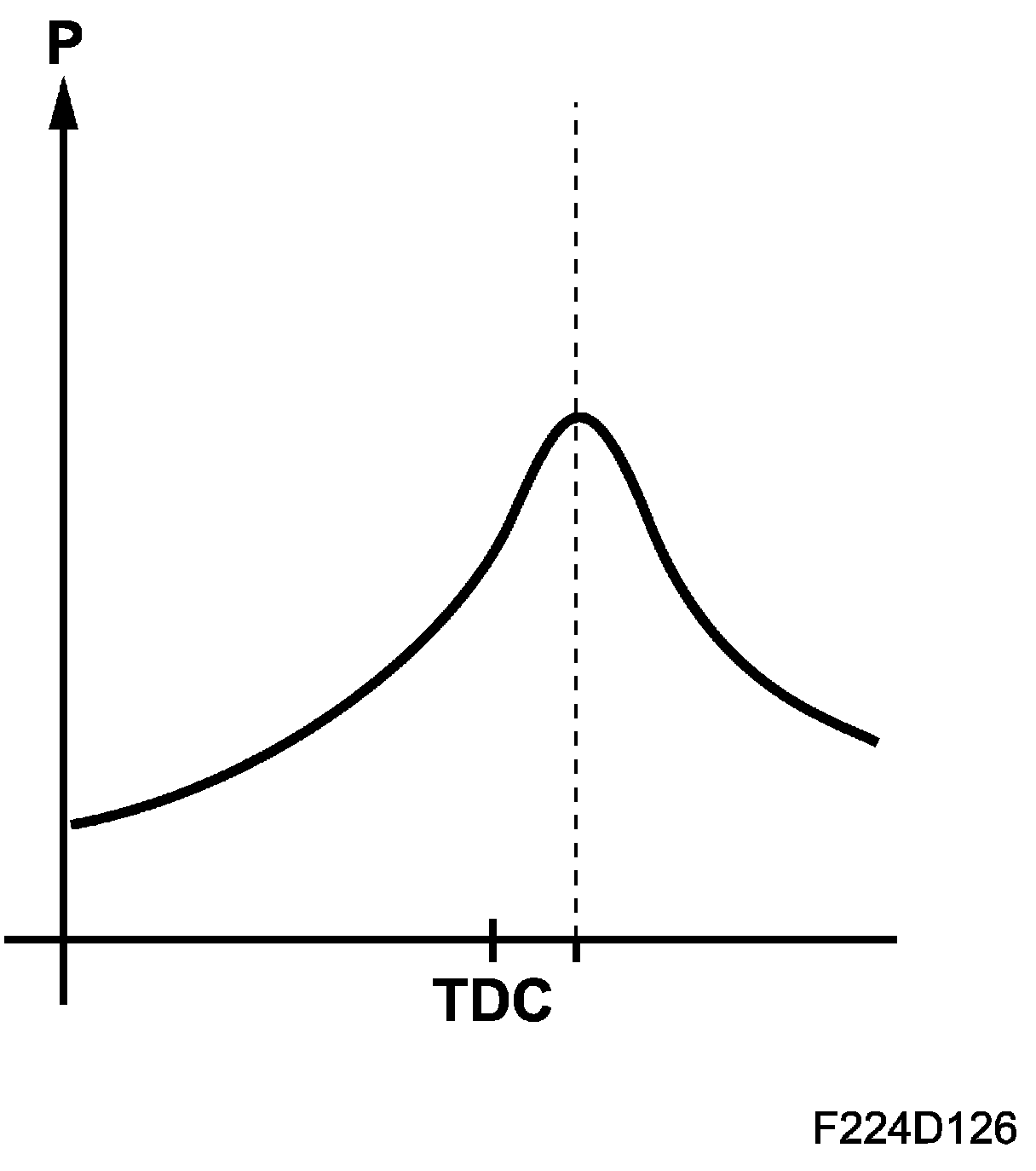 The combustion pressure should normally attain its maximum value at around 16-17 degrees ATDC. In order to achieve this, the fuel/air mixture must ignite slightly earlier. Normal ignition timing at 2000 rpm, light load, can be around 35 degrees BTDC so that the igniting flame has time to expand and allow the pressure in the cylinder to reach its maximum at the correct point in time.