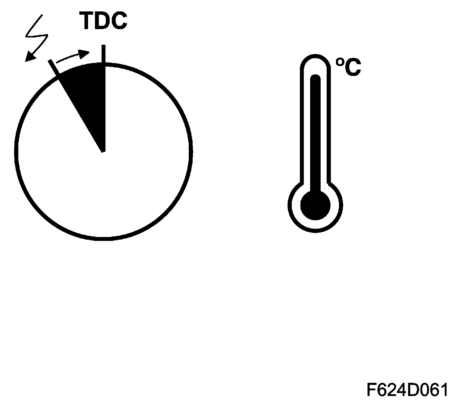 Conversely, the flame expands quickly when temperature is high. Ignition timing must then be slightly retarded. Otherwise, the pressure in the cylinder would reach high values BTDC, which would result in the engine starting hard with spiking sounds.