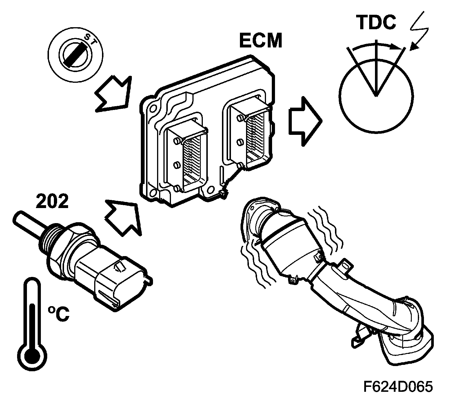 The "catalytic converter heating" function is activated during certain cold start conditions. This function causes a delay in ignition timing, usually after top dead center together with the AIR function, which injects air into the exhaust ports.