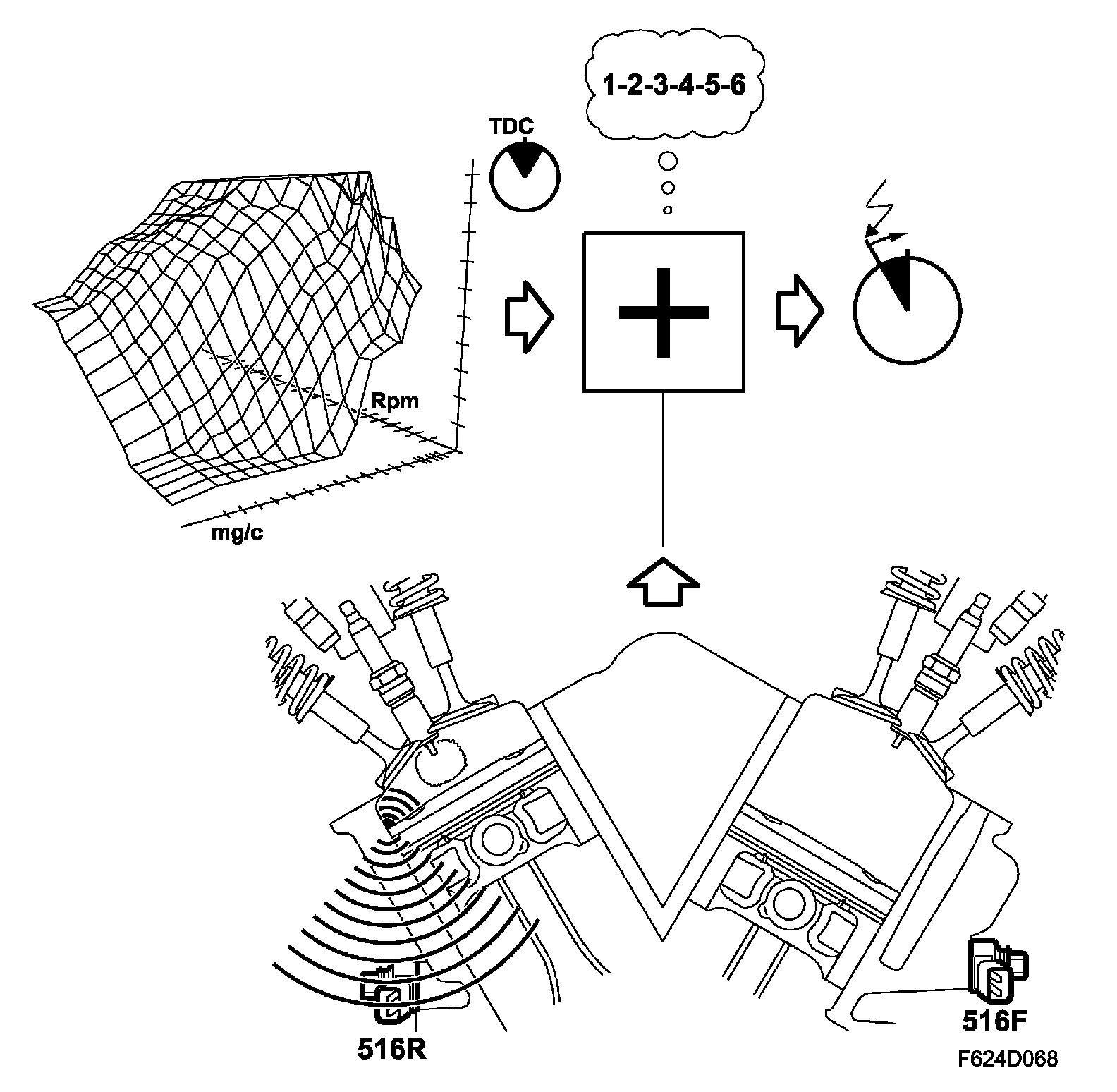 The engine is equipped with two piezoelectric knock sensors - one per cylinder bank. The sensors register engine working noise. Knocking generates a characteristic noise, the frequency of which depends on the factors such as the shape of the combustion chamber. By filtering the sound from the sensors through a band-pass filter that only allows sound within the frequency characteristic of knocking to pass through, some of the engine's other noises can be filtered out.