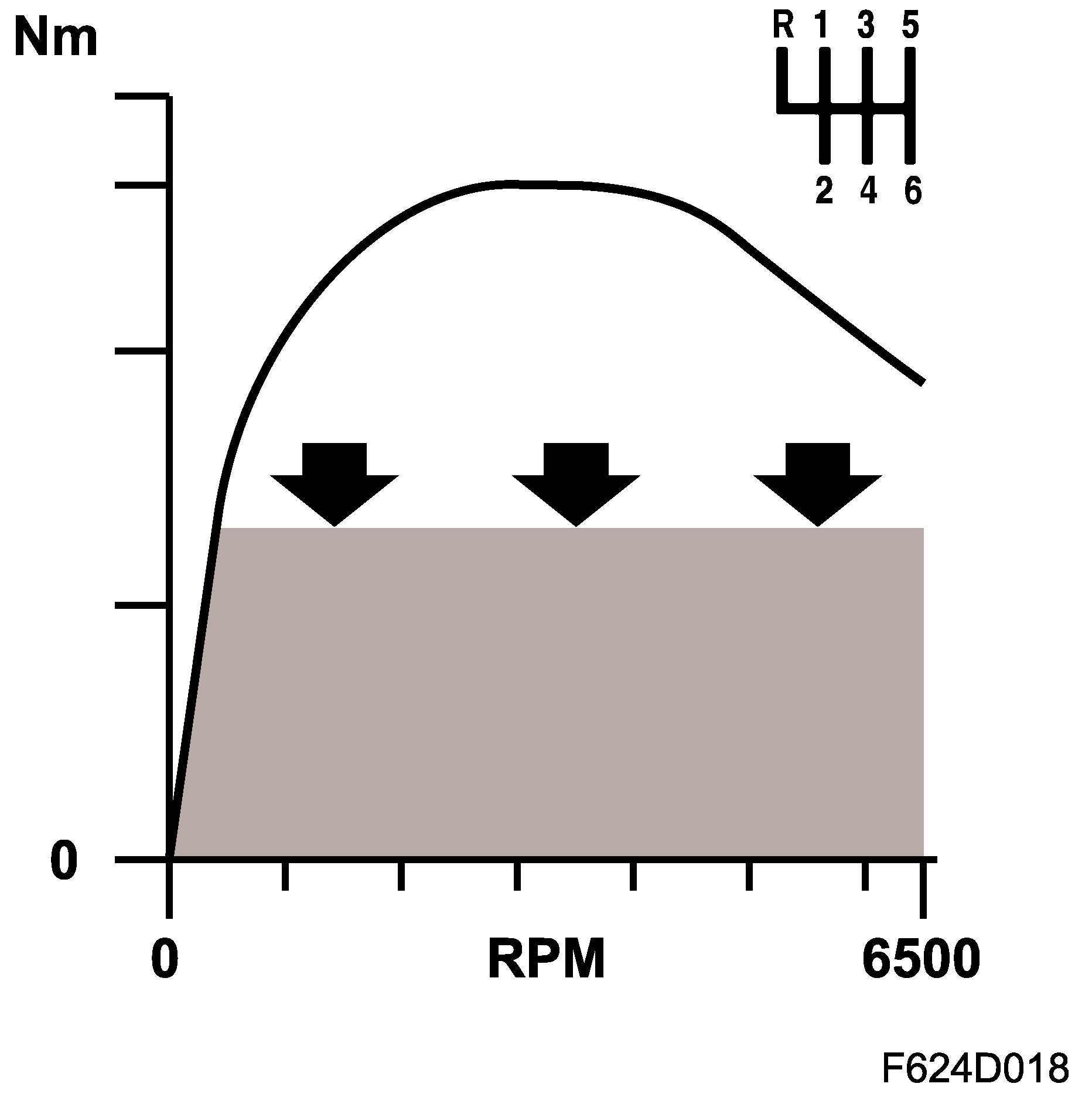 ECM calculates the current gear via vehicle speed and engine speed. The following gears are subject to torque limitation: