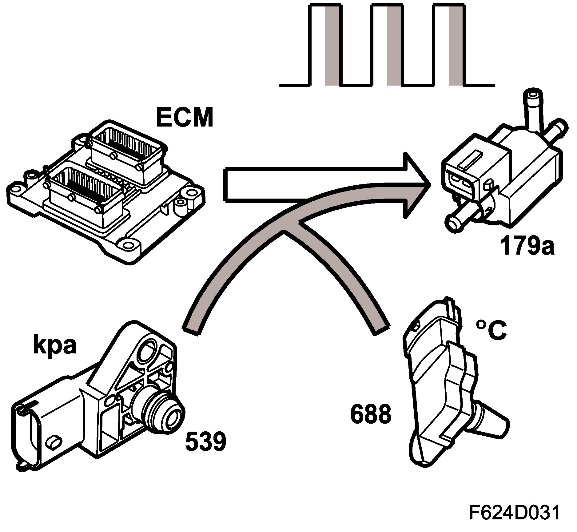 The values for atmospheric absolute air pressure and intake air temperature are used to correct the conversion. At low atmospheric pressure or when the intake air temperature is high, a greater PWM ratio is required to obtain the same engine torque.
