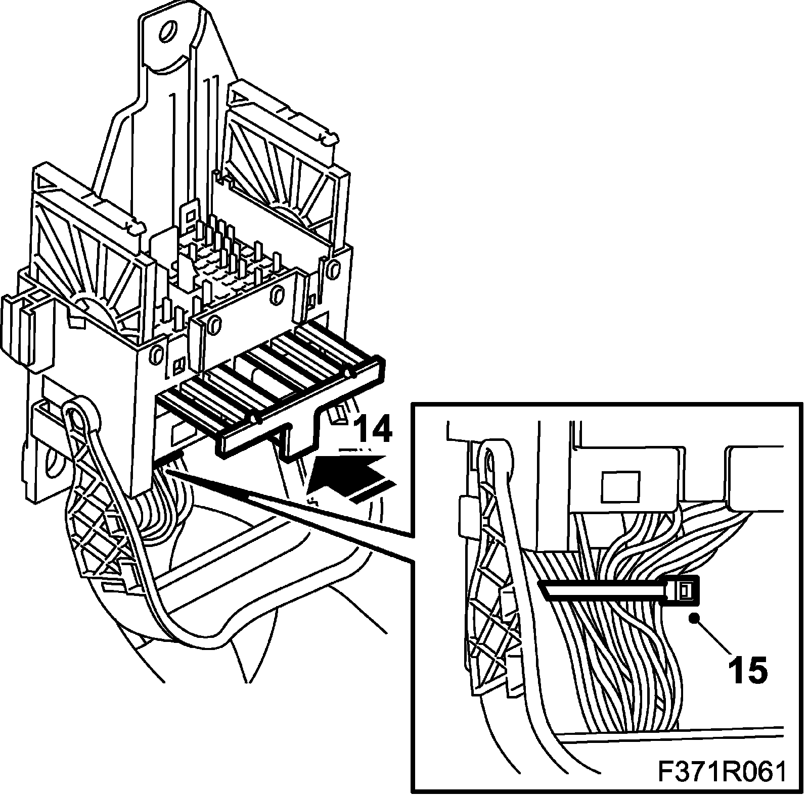 9. Fit the pin on the lead using olive green pliers (0.35-0.75 sq.mm) from 86 12 939 Tool box, wiring harness.