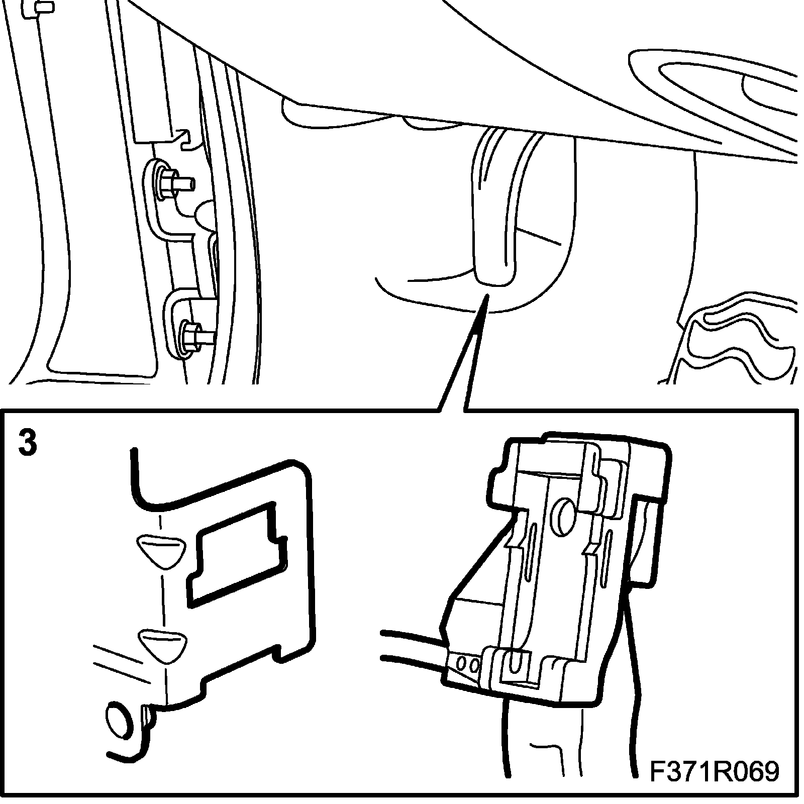 3. Fit the bonnet opening lever by positioning it and pressing upward.