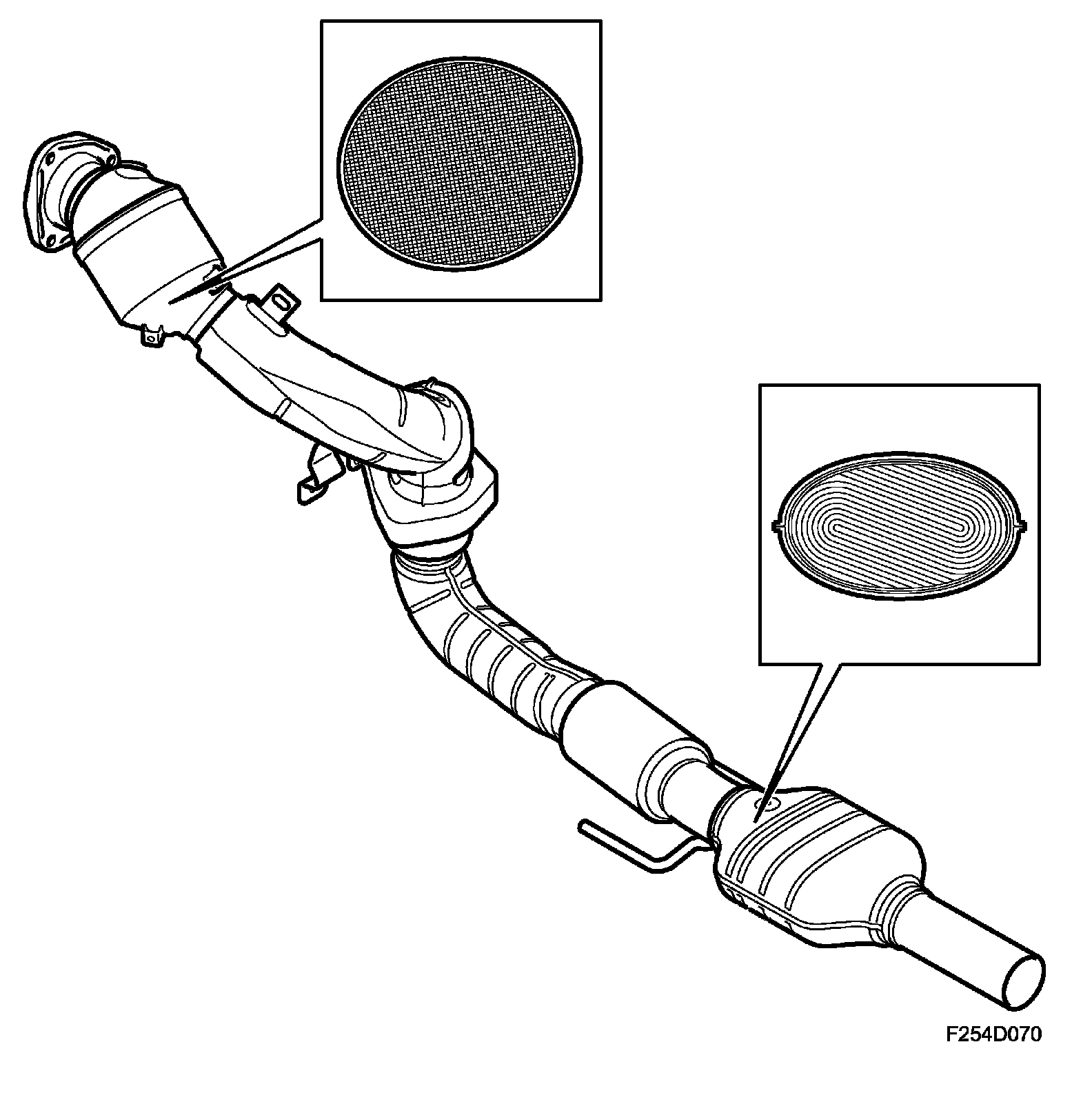 The car is equipped with two catalytic converters. One is located just downstream of the turbine outlet while the other is located under the car. The front catalytic converter has a ceramic carrier while the carrier of the rear one is metallic.