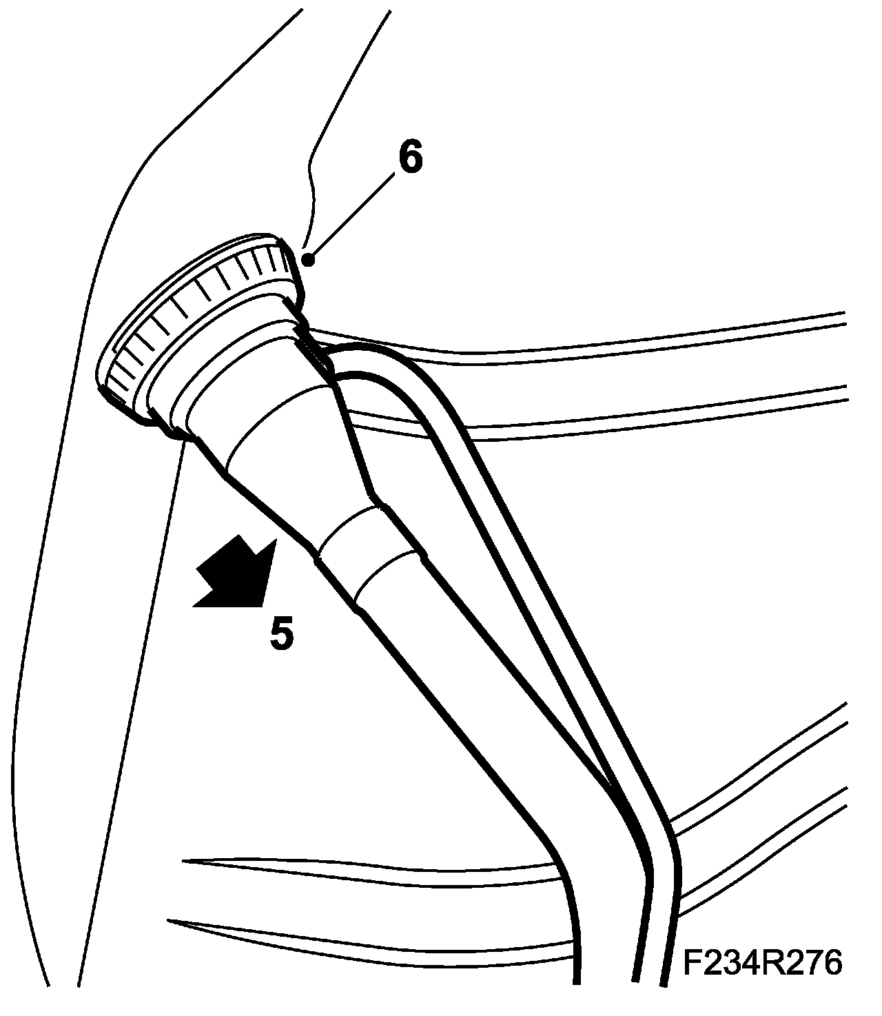 6. Remove the filler cap connecting pipe from the inner panel's hole.