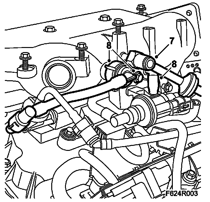 7. Detach the brake vacuum hose from the intake manifold.