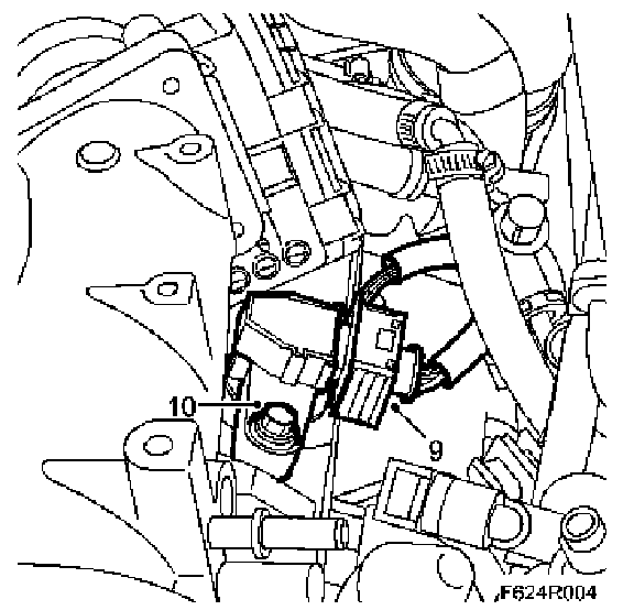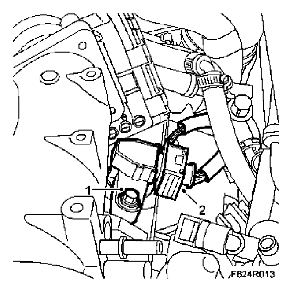 3. Remove the engine control module with mounting and move it aside. The lower hole of the mounting is slotted.