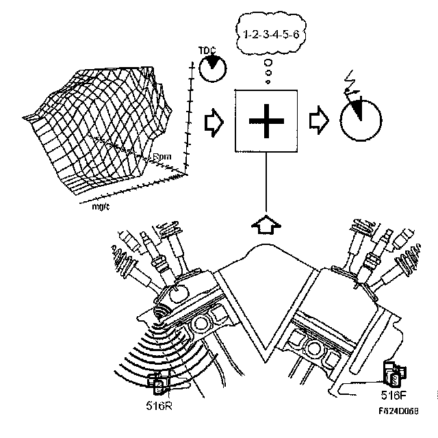 The engine is equipped with two piezoelectric knock sensors - one per cylinder bank. The sensors register engine working noise. Knocking generates a characteristic noise, the frequency of which depends on the factors such as the shape of the combustion chamber. By filtering the sound from the sensors through a bandpass filter that only allows sound within the frequency characteristic of knocking to pass through, some of the engine's other noises can be filtered out.
