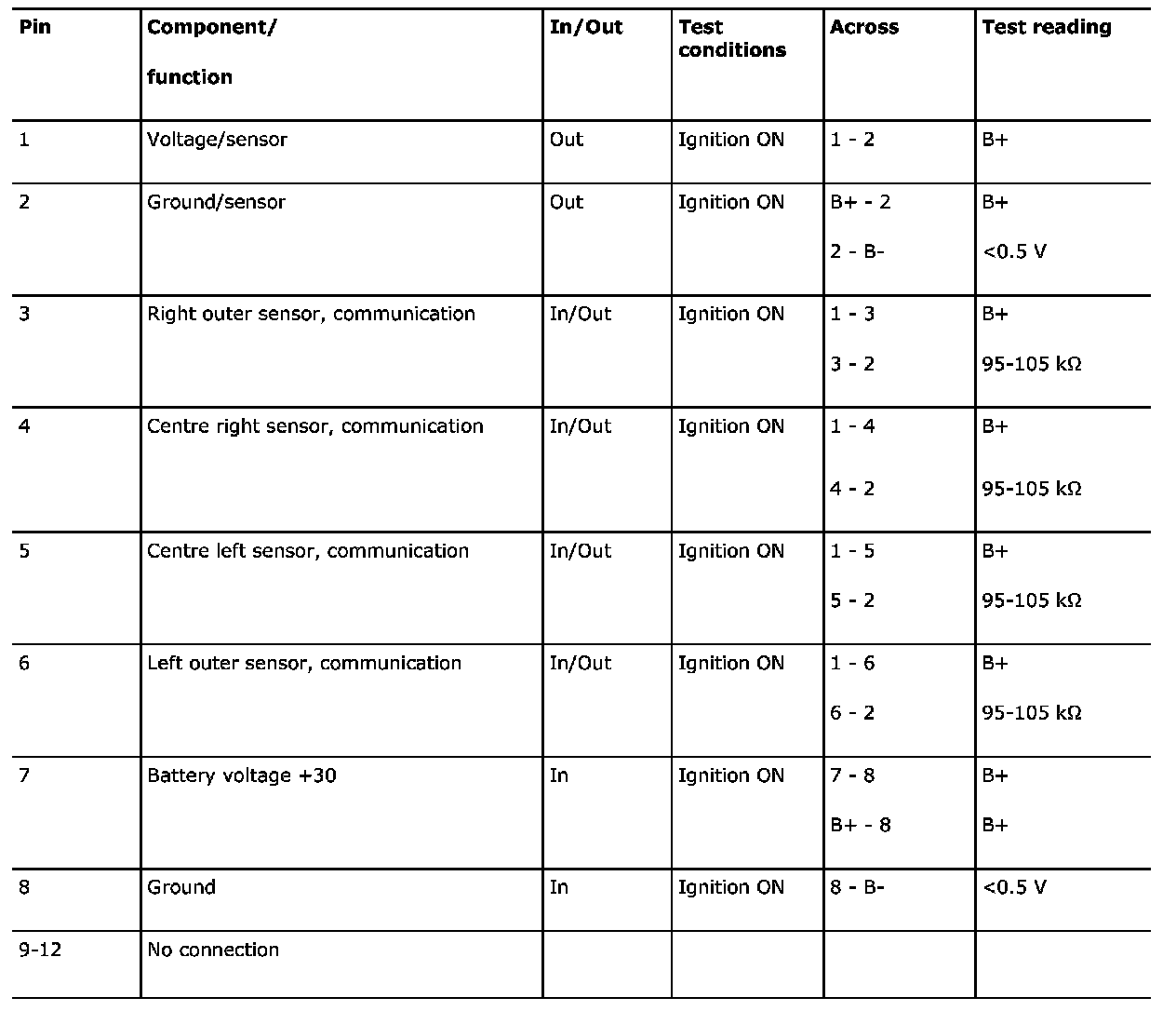 ^ The specified readings are with the ignition ON unless stated otherwise.