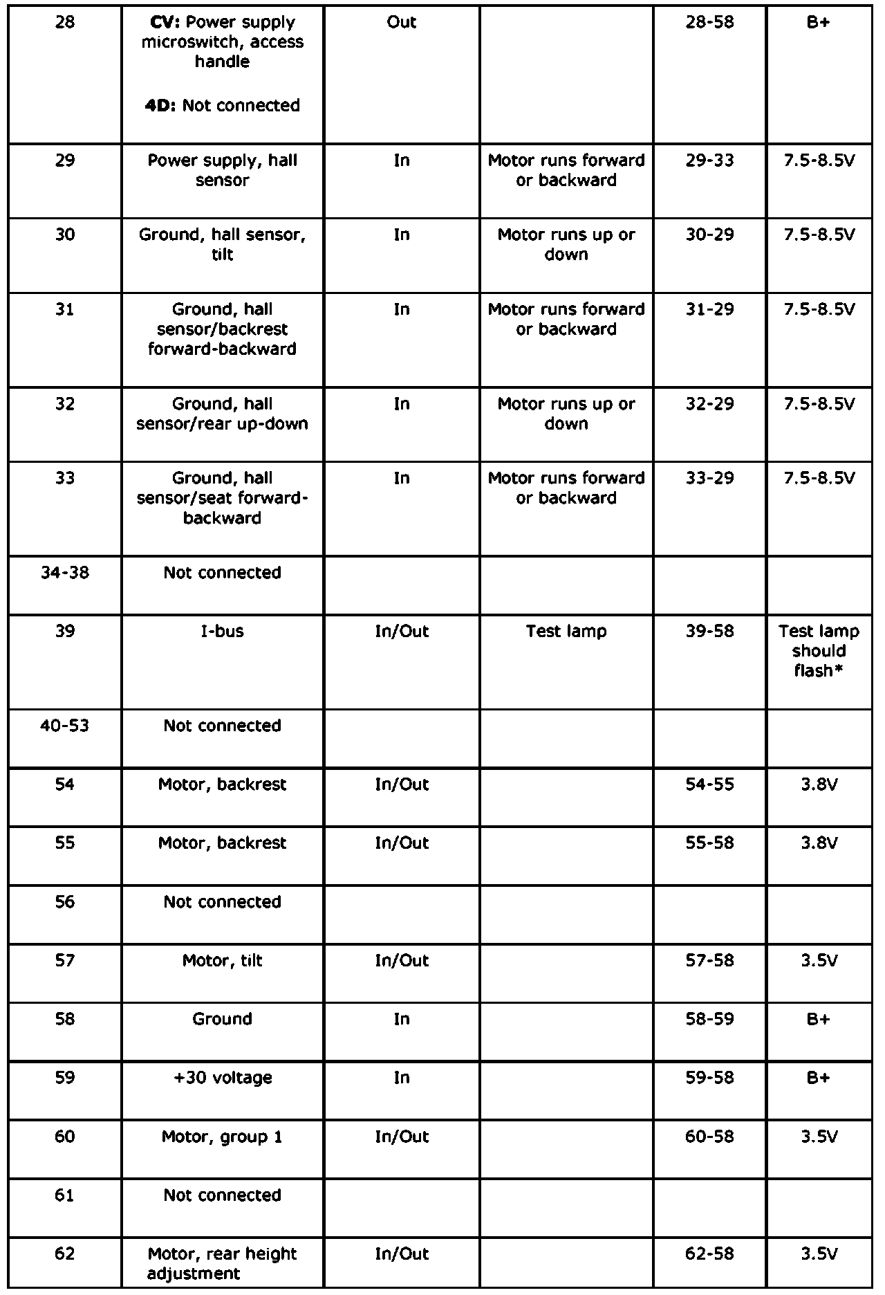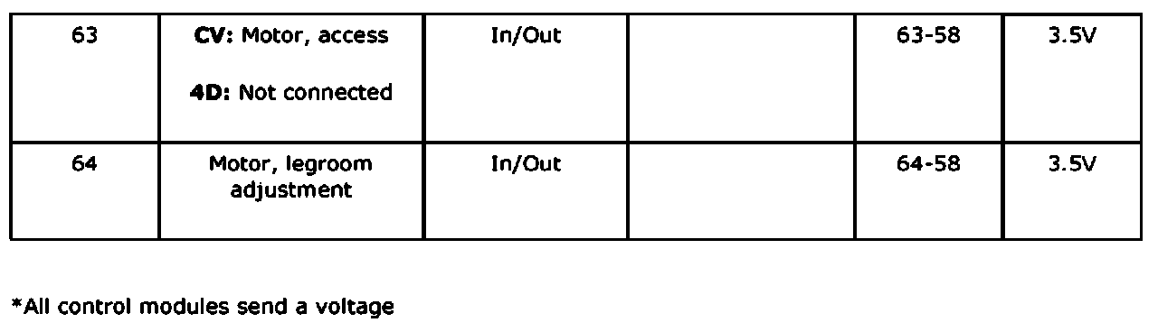 Measurement Value, Control Module Connections, Seat Control Module (357k/Dk)